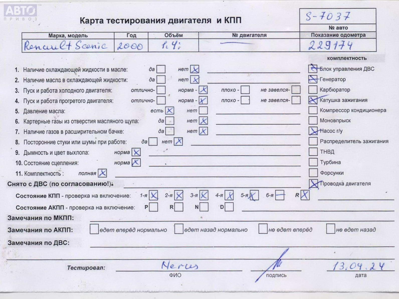 | Марка / Модель / Год: | Renault Scenic I (1996-2003) 2000 |