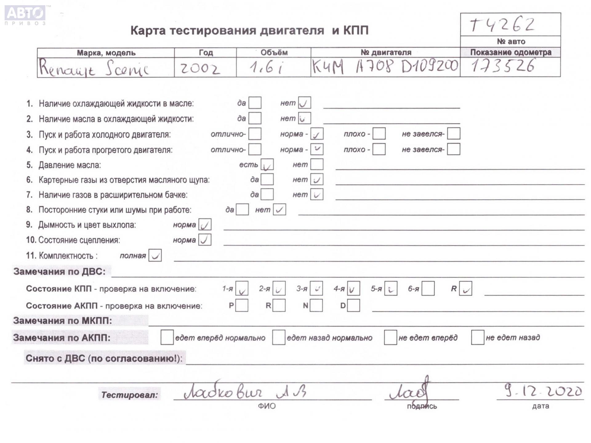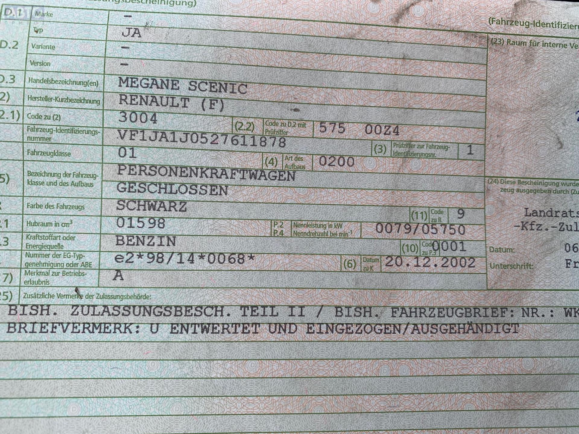 | Марка / Модель / Год: | Renault Scenic I (1996-2003) 2002 |