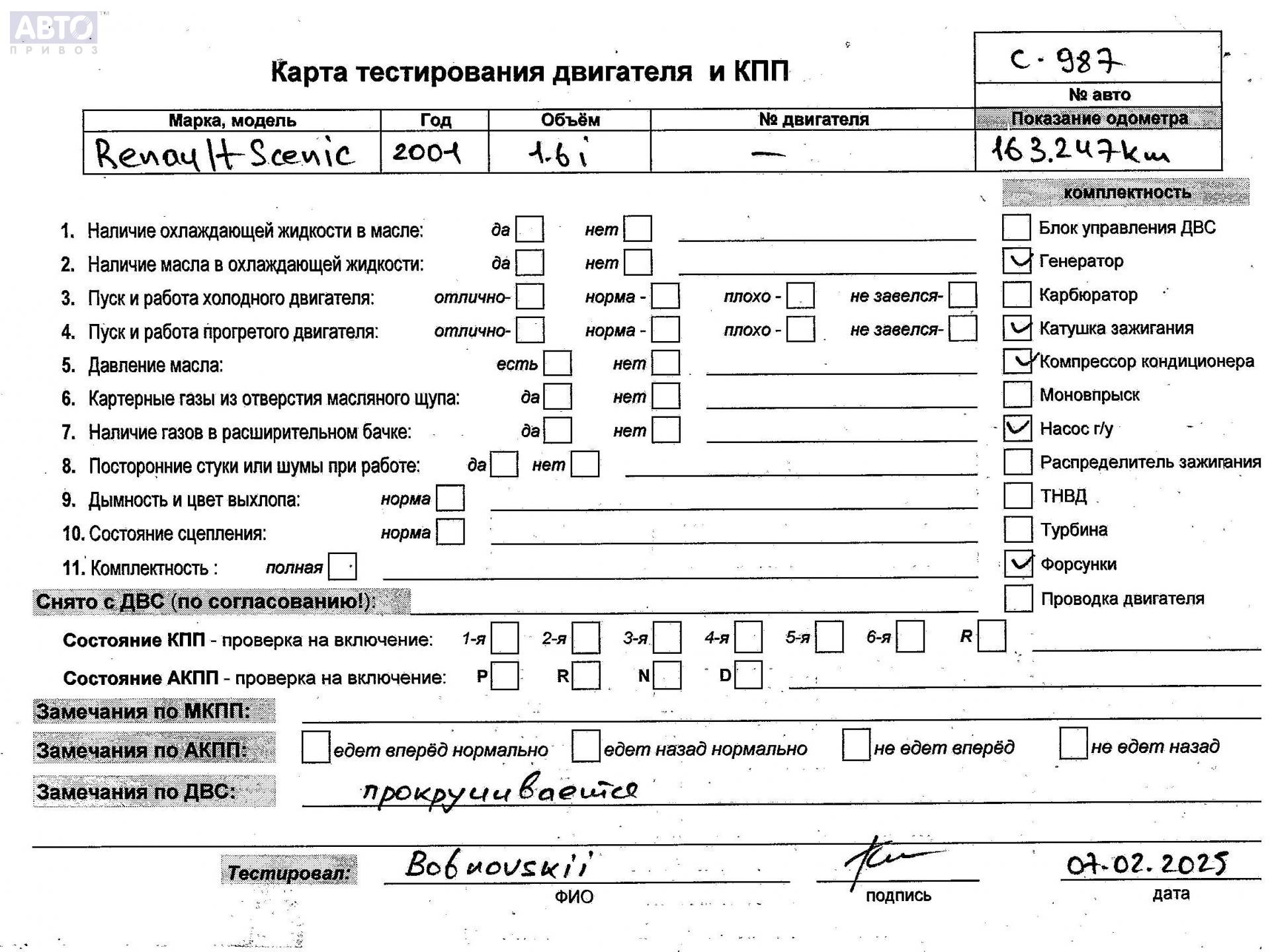 | Марка / Модель / Год: | Renault Scenic I (1996-2003) 2003 |