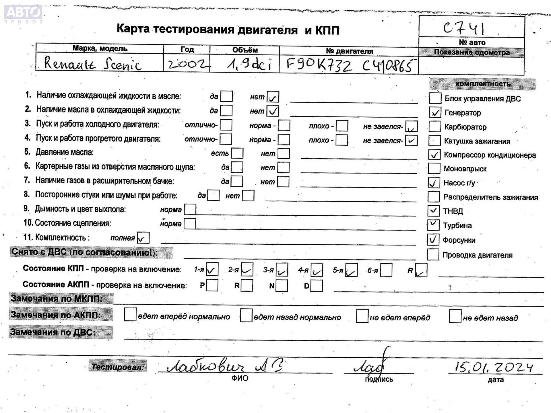 | Автомобиль / VIN: | C0741 VF1JA050526618544 |