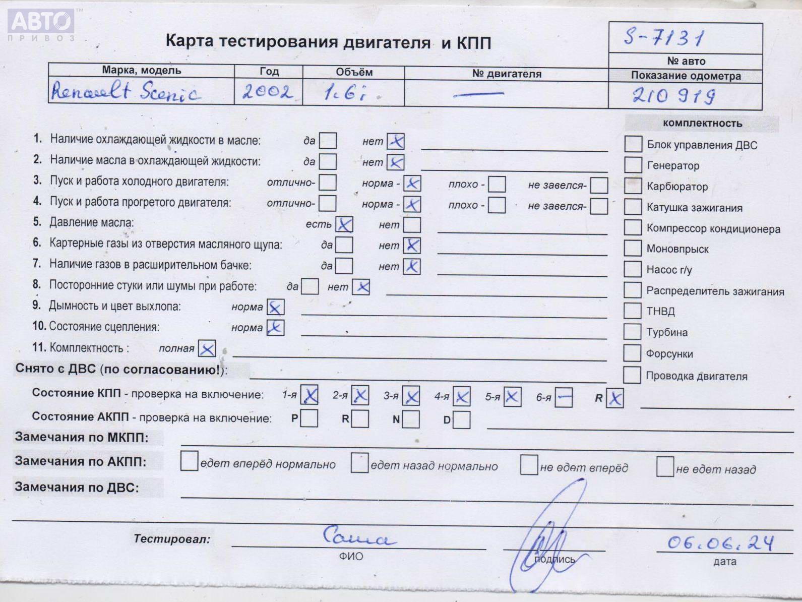 | Марка / Модель / Год: | Renault Scenic I (1996-2003) 2002 |