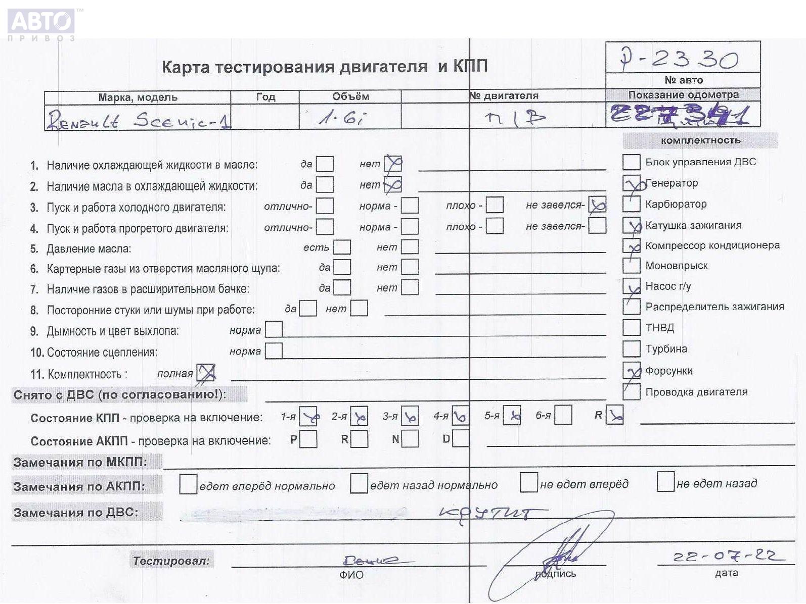 | Марка / Модель / Год: | Renault Scenic I (1996-2003) 2002 |