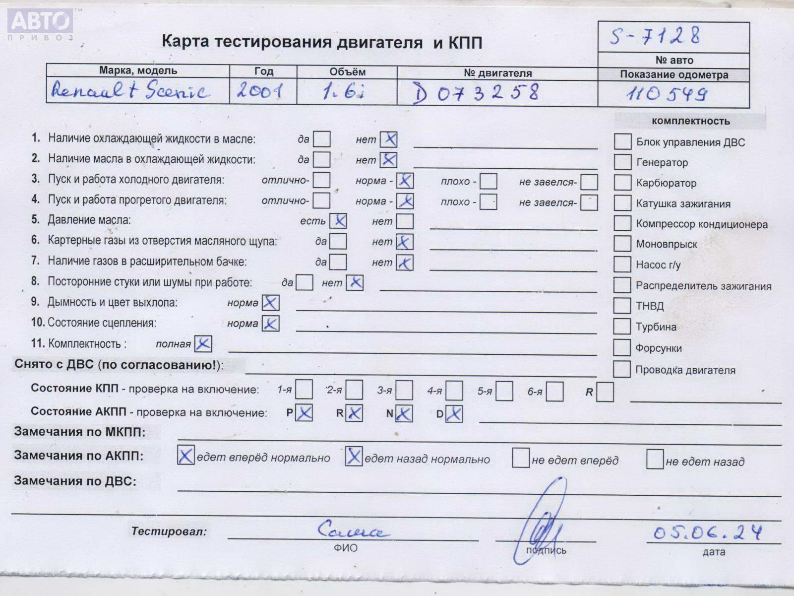 | Марка / Модель / Год: | Renault Scenic I (1996-2003) 2001 |