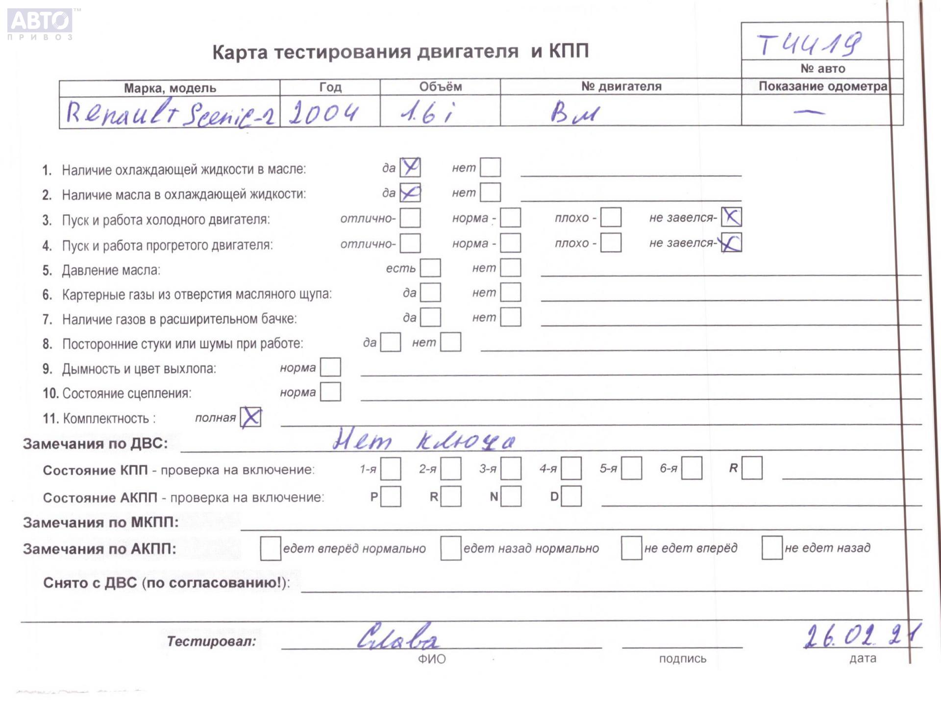 | Марка / Модель / Год: | Renault Scenic II (2003-2009) 2004 |