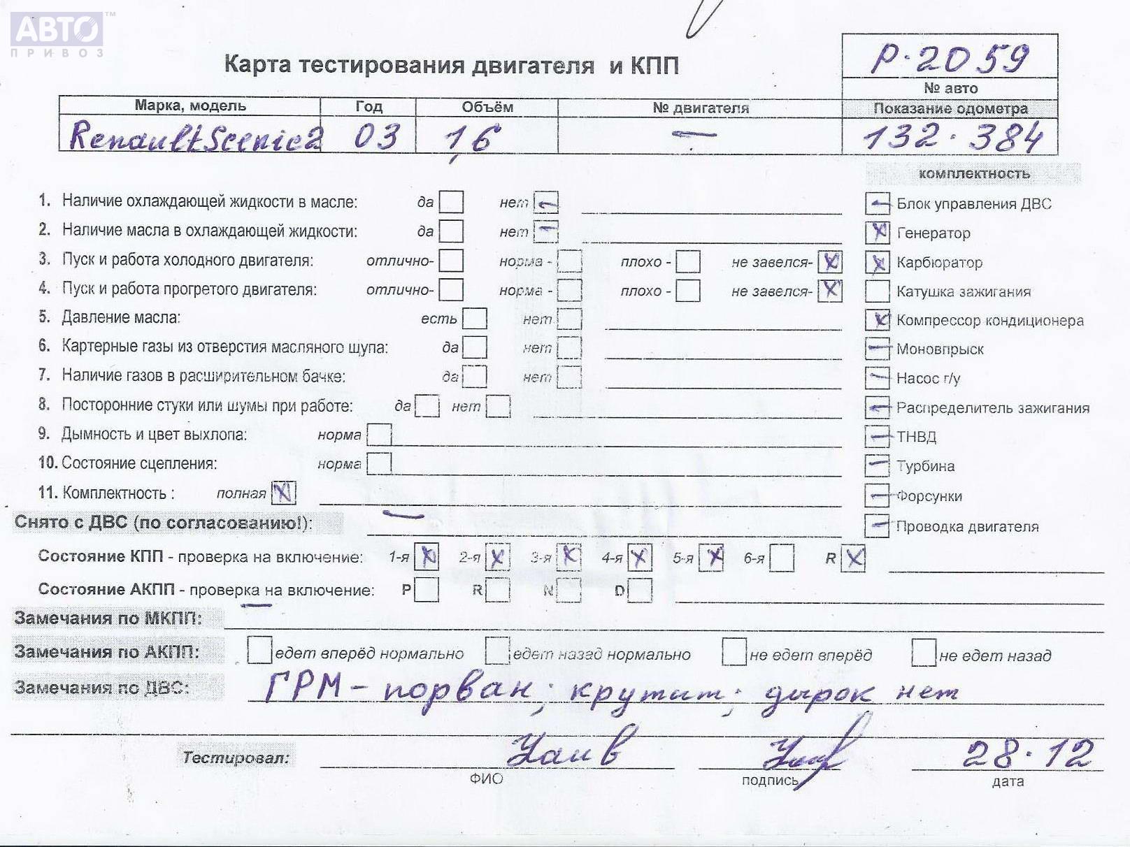 | Марка / Модель / Год: | Renault Scenic II (2003-2009) 2004 |