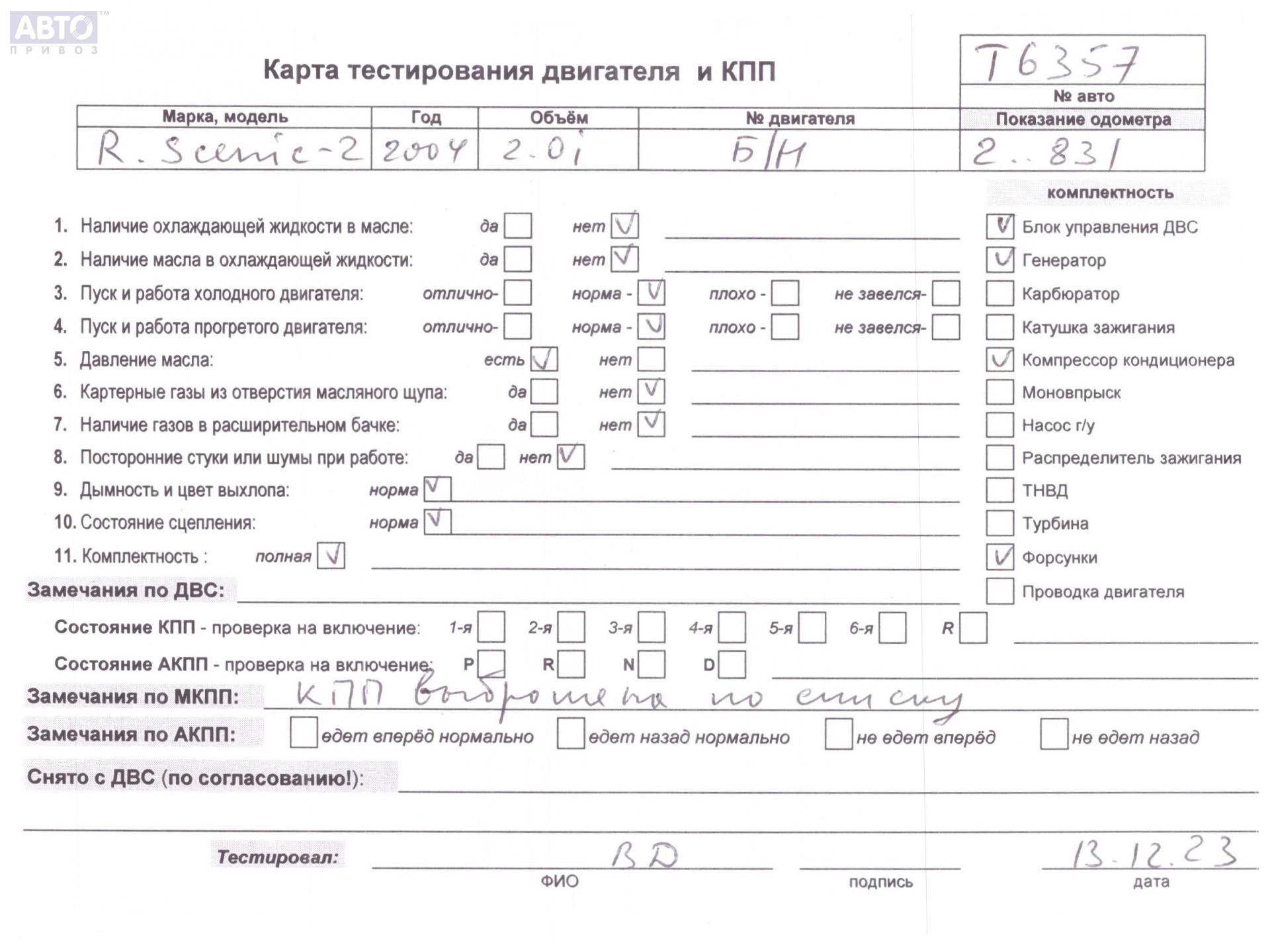 | Марка / Модель / Год: | Renault Scenic II (2003-2009) 2004 |