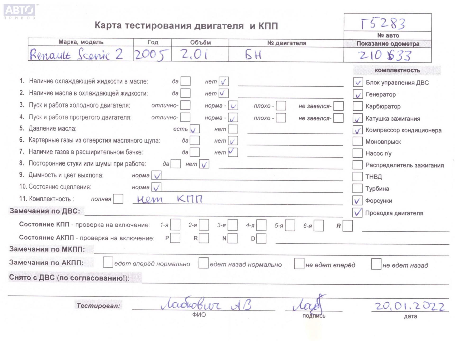 | Марка / Модель / Год: | Renault Scenic II (2003-2009) 2005 |