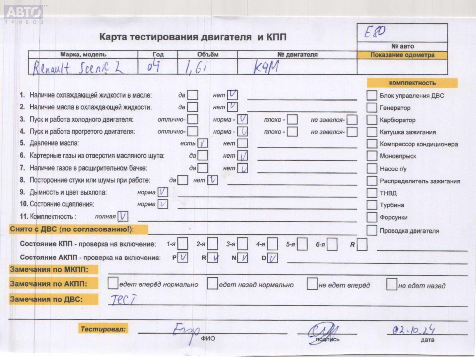 | Марка / Модель / Год: | Renault Scenic II (2003-2009) 2006 |