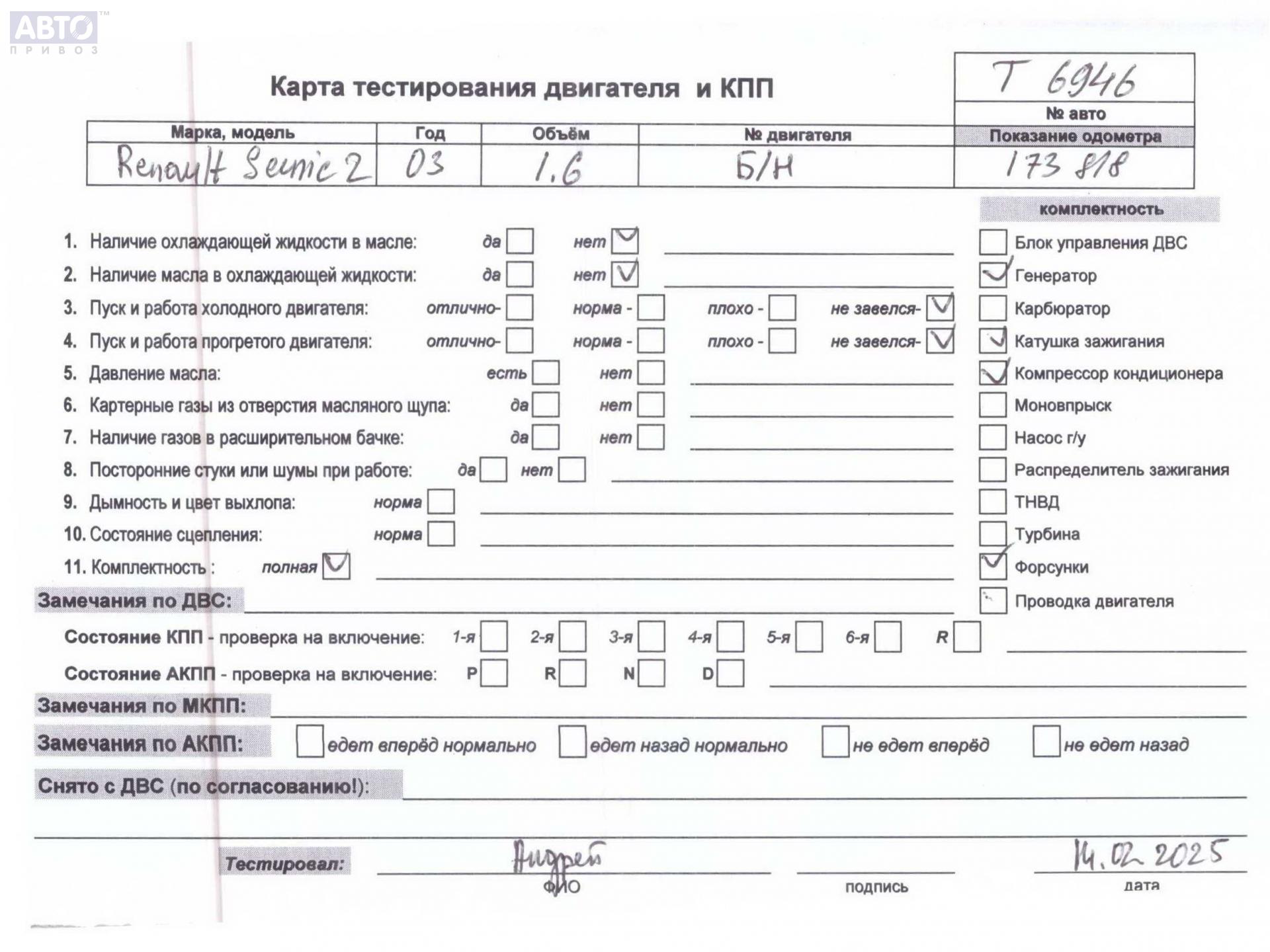 | Марка / Модель / Год: | Renault Scenic II (2003-2009) 2003 |