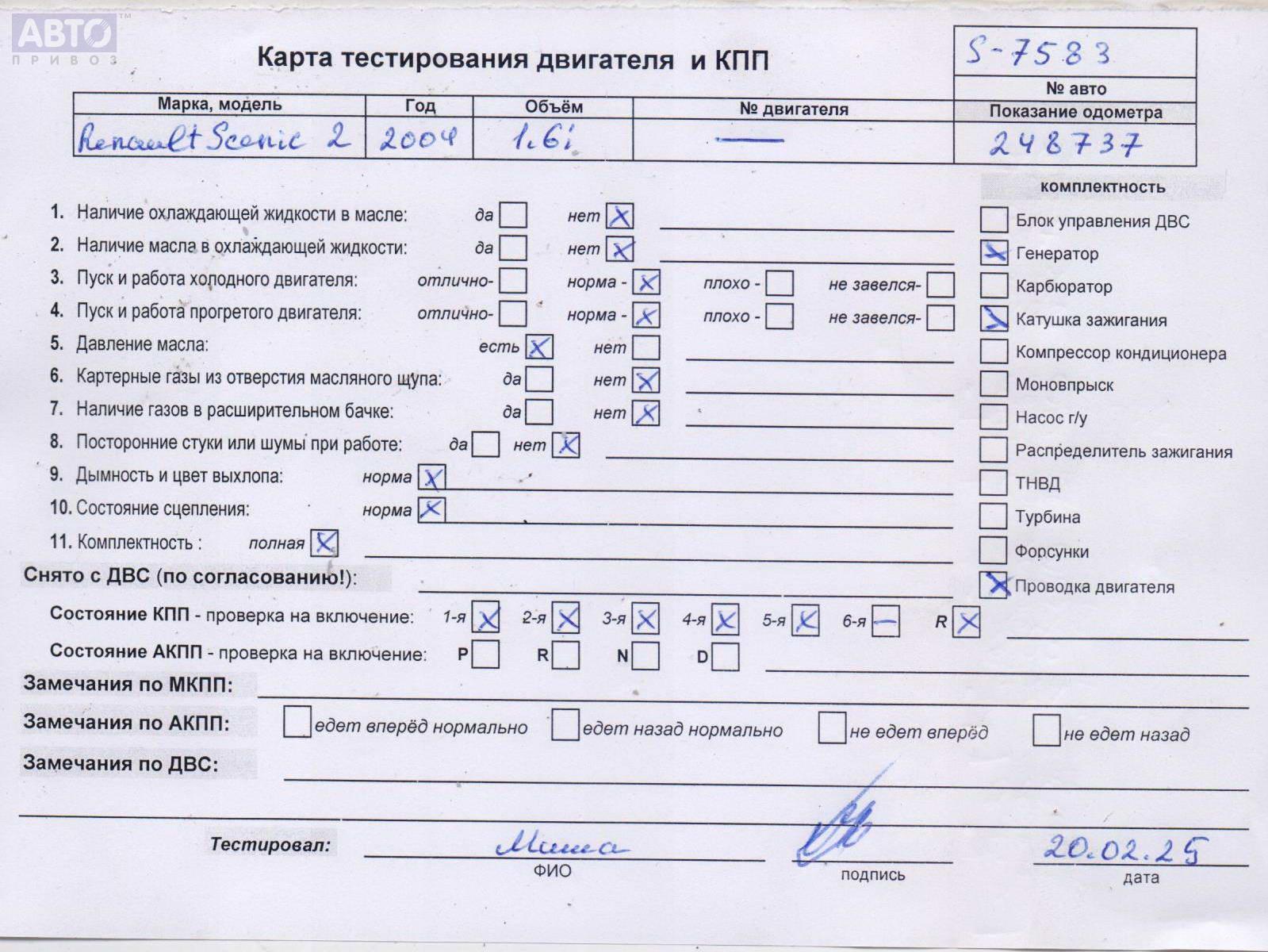 | Марка / Модель / Год: | Renault Scenic II (2003-2009) 2004 |