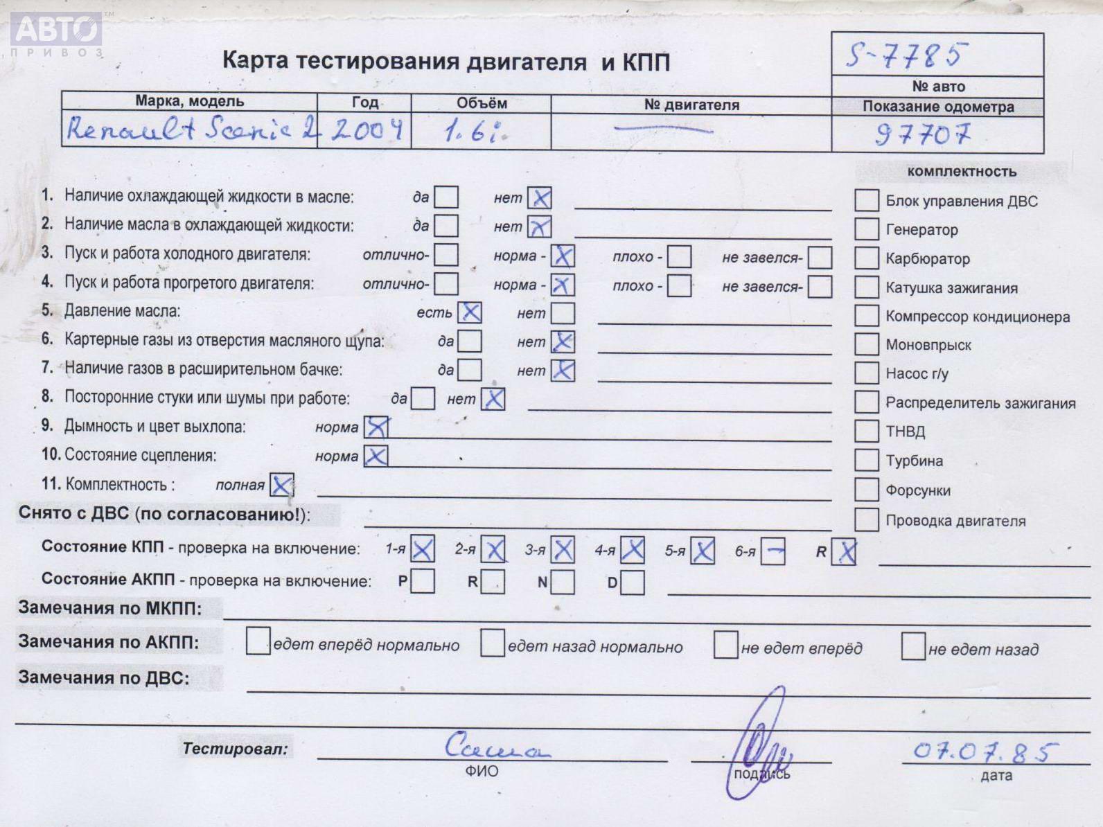 | Автомобиль / VIN: | S7785 VF1JM0J0H32545485 |