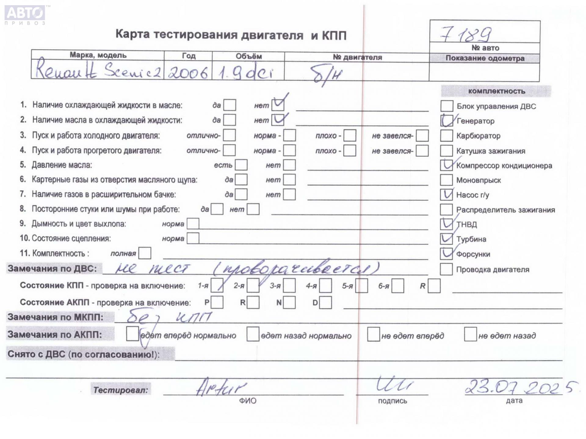 | Марка / Модель / Год: | Renault Scenic II (2003-2009) 2006 |