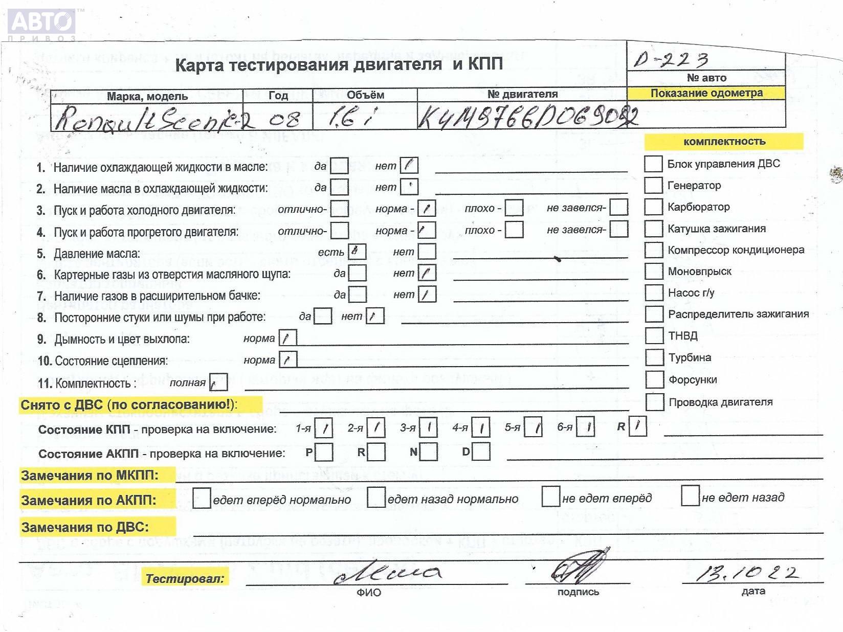 | Автомобиль / VIN: | D0223 VF1JM1R0640471216 |