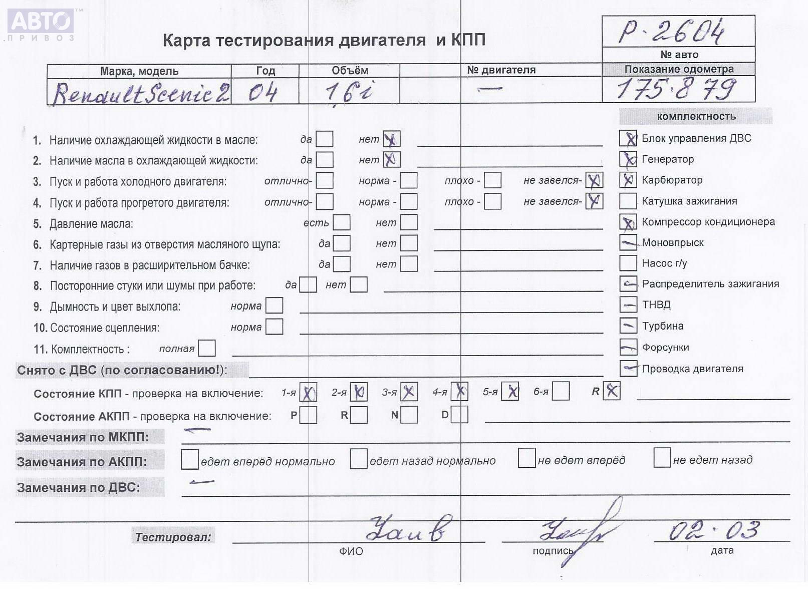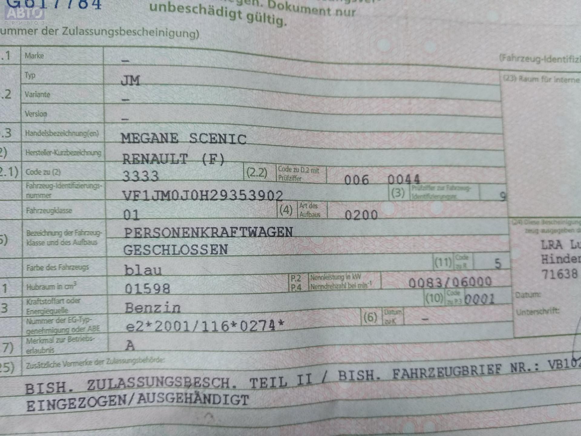 | Марка / Модель / Год: | Renault Scenic II (2003-2009) 2004 |