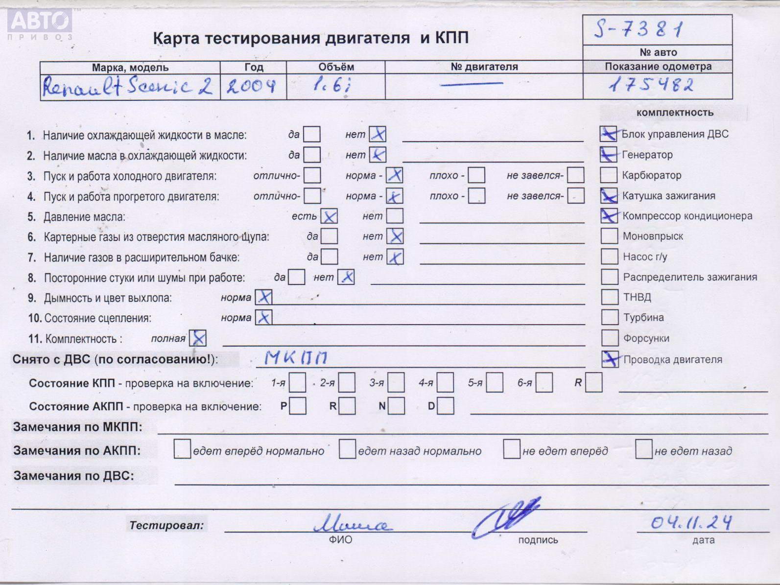 | Марка / Модель / Год: | Renault Scenic II (2003-2009) 2004 |