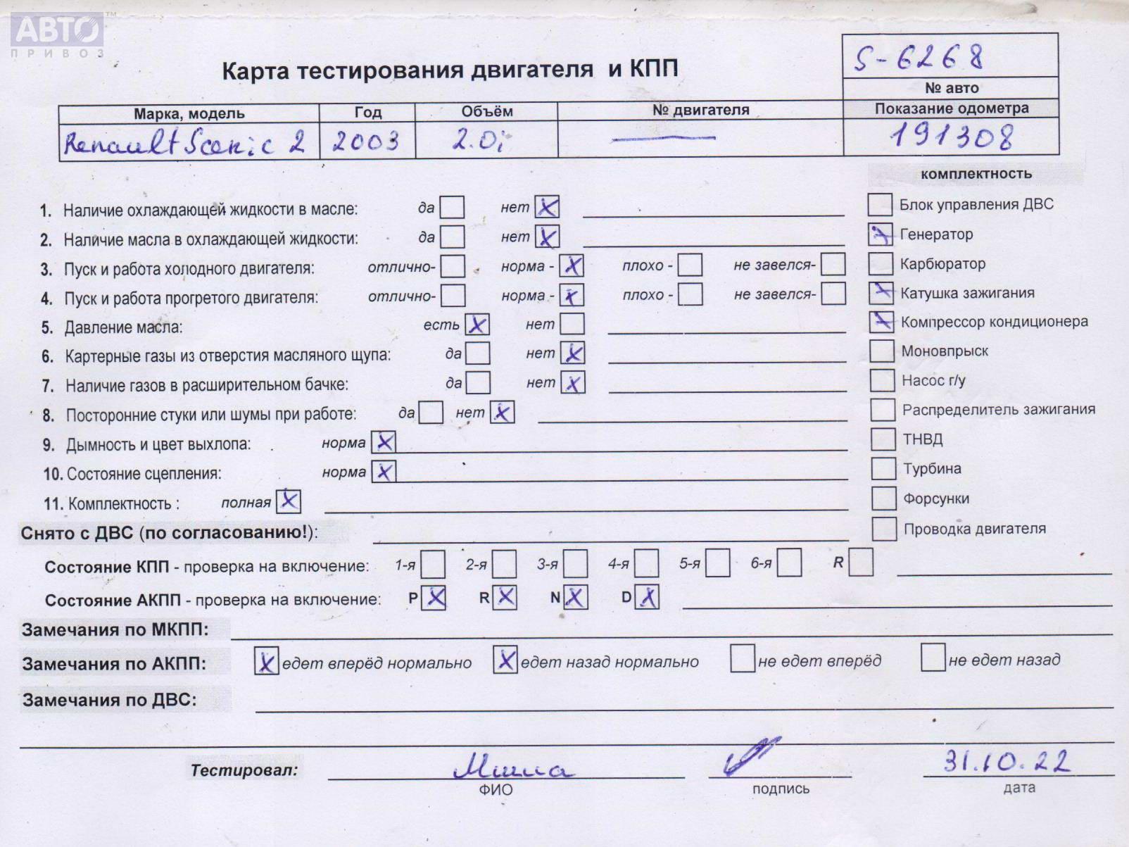 | Марка / Модель / Год: | Renault Scenic II (2003-2009) 2003 |