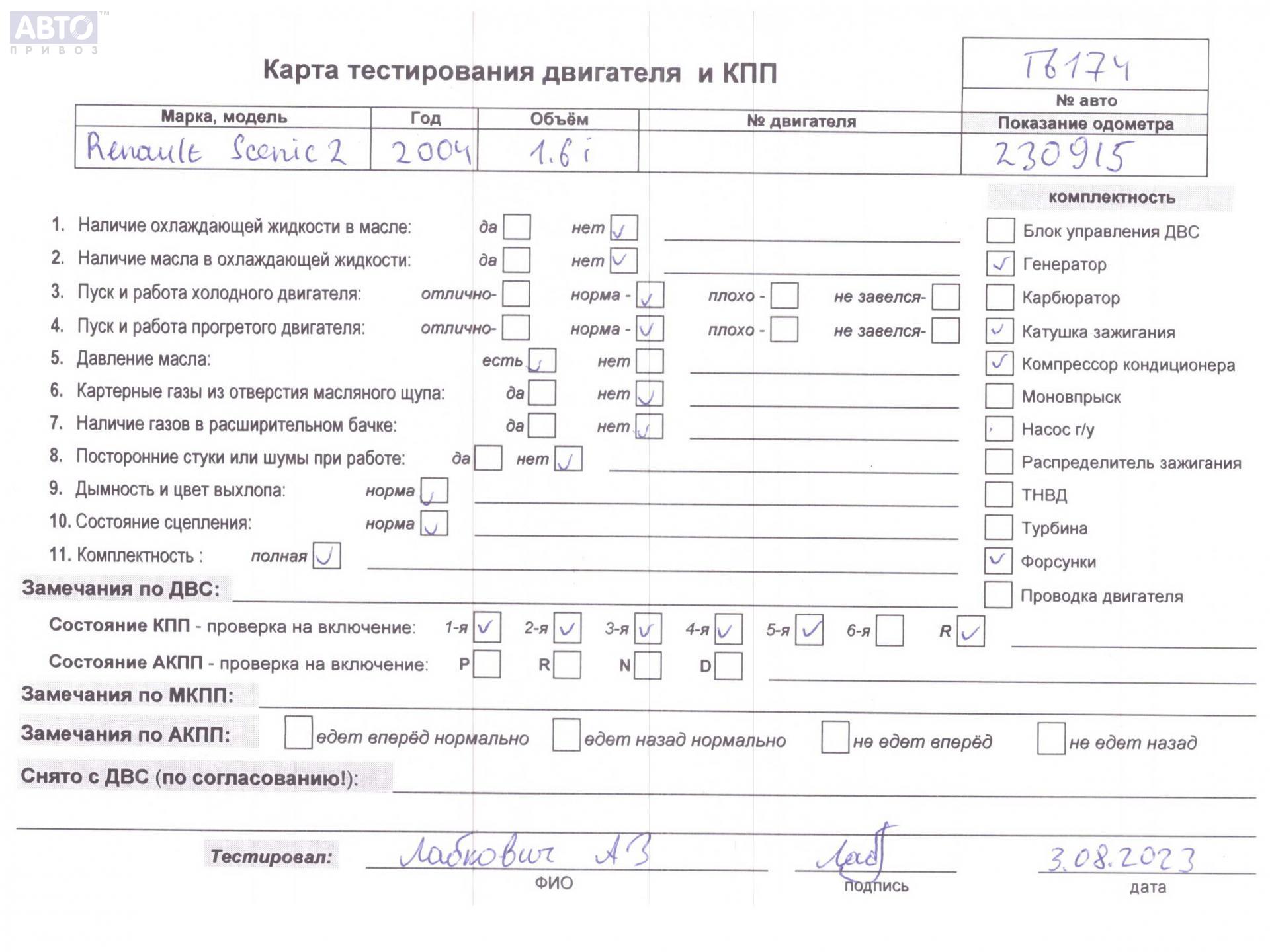 | Марка / Модель / Год: | Renault Scenic II (2003-2009) 2004 |