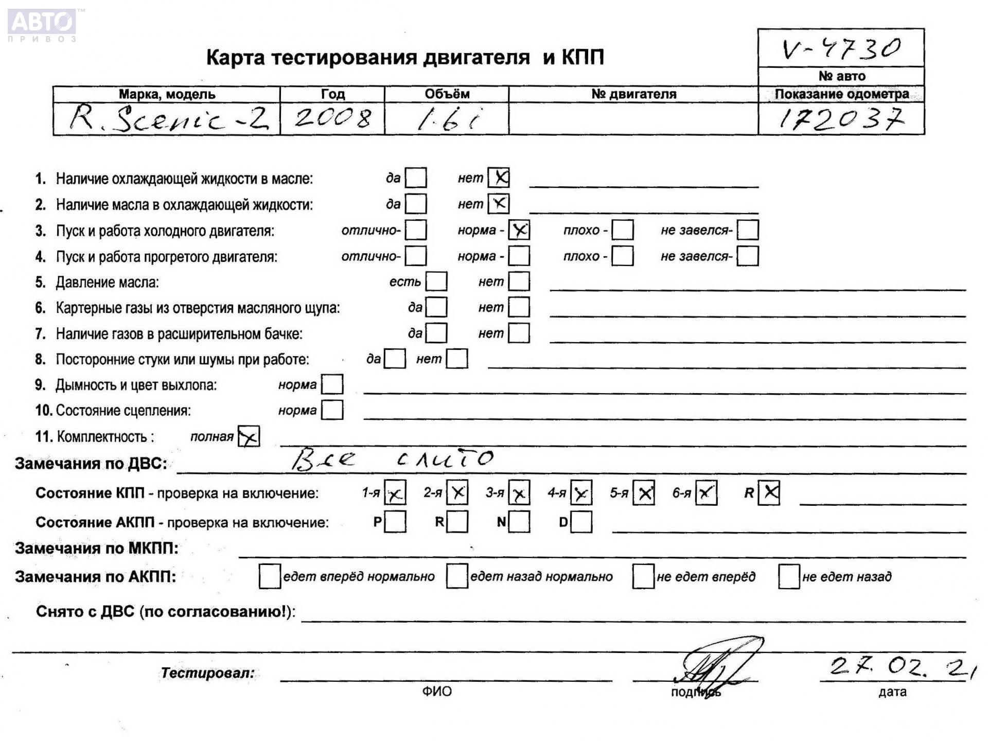 | Марка / Модель / Год: | Renault Scenic II (2003-2009) 2008 |