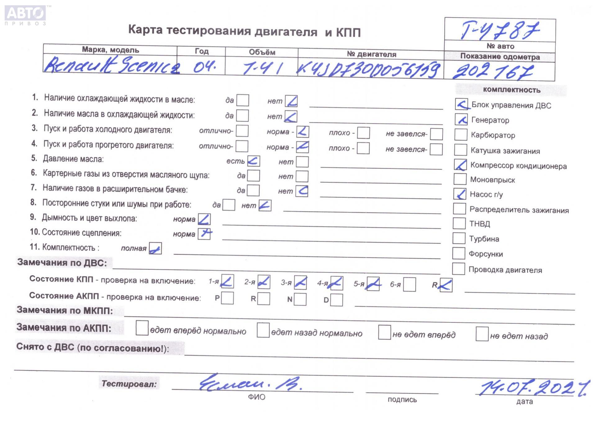 | Марка / Модель / Год: | Renault Scenic II (2003-2009) 2004 |