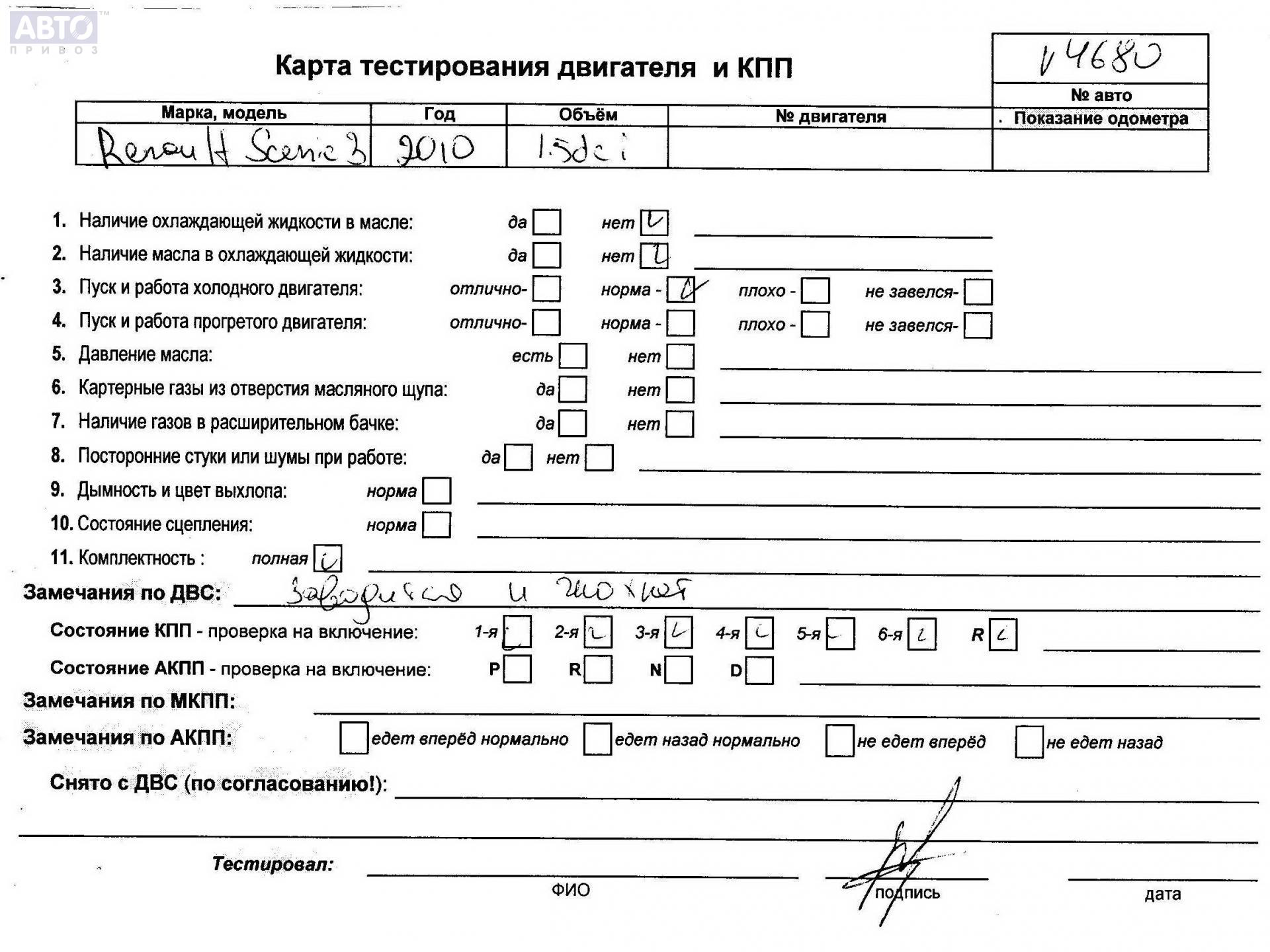 | Марка / Модель / Год: | Renault Scenic III (2009-2015) 2010 |