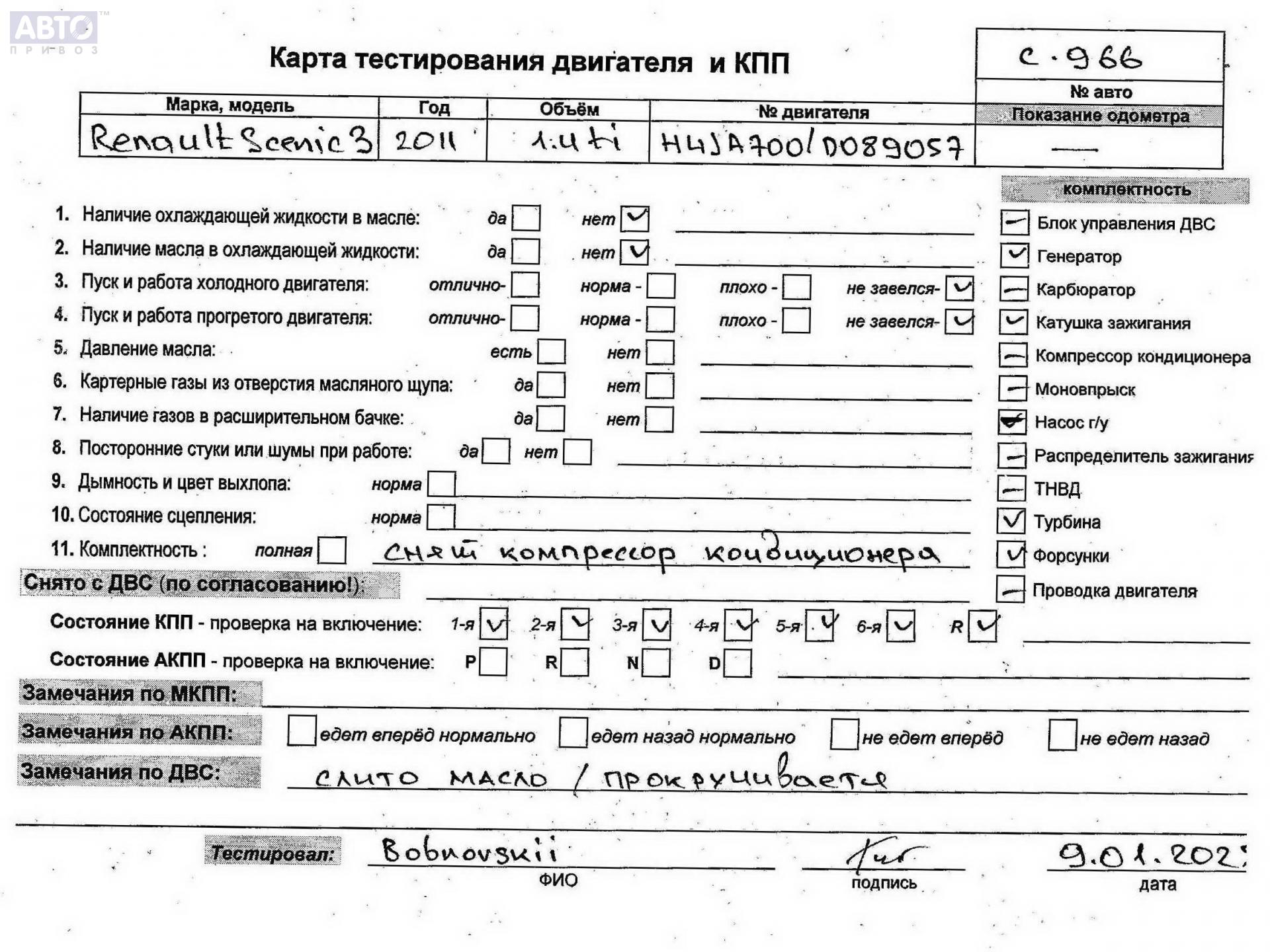 | Марка / Модель / Год: | Renault Scenic III (2009-2015) 2011 |