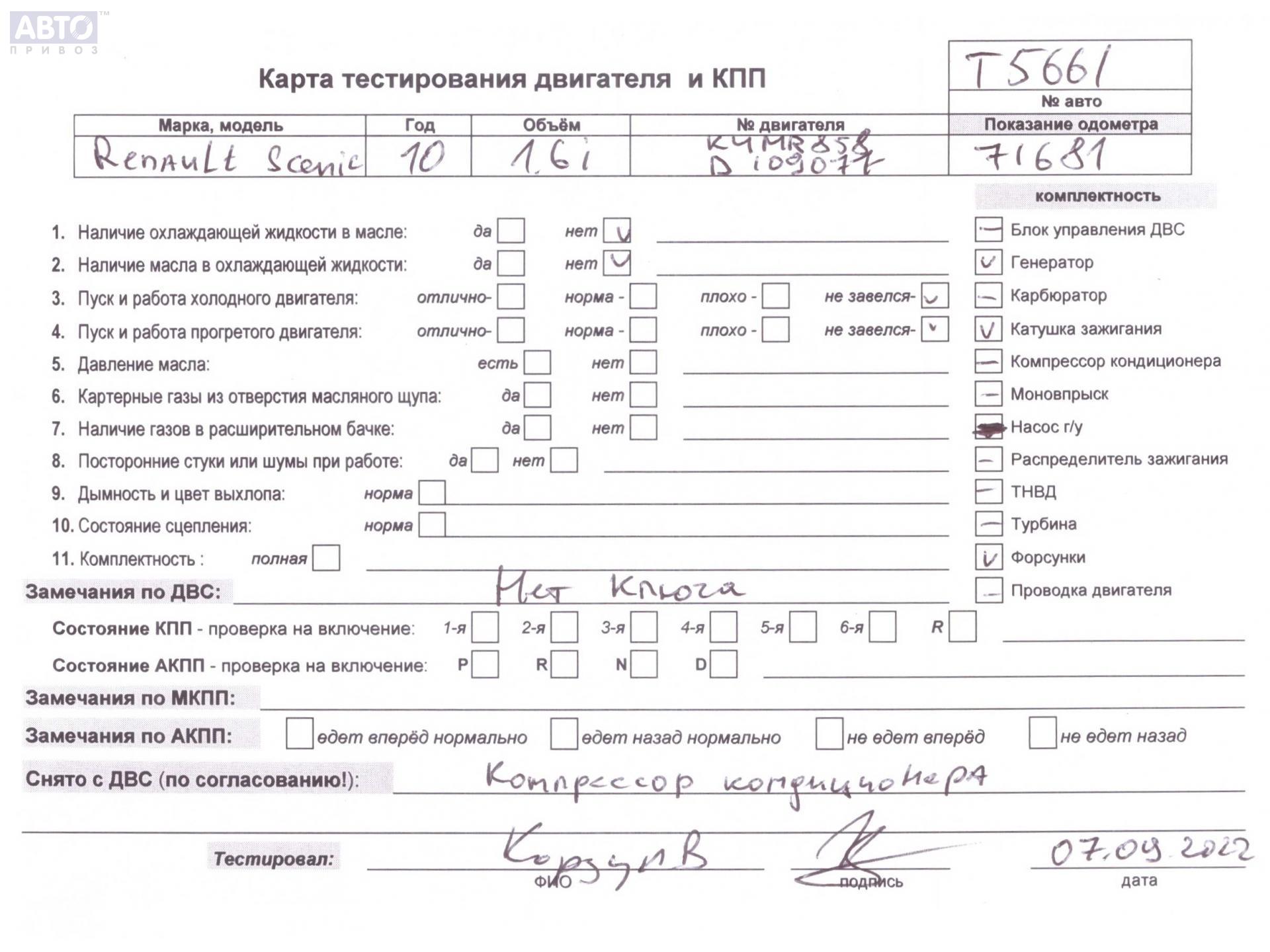| Марка / Модель / Год: | Renault Scenic III (2009-2015) 2010 |