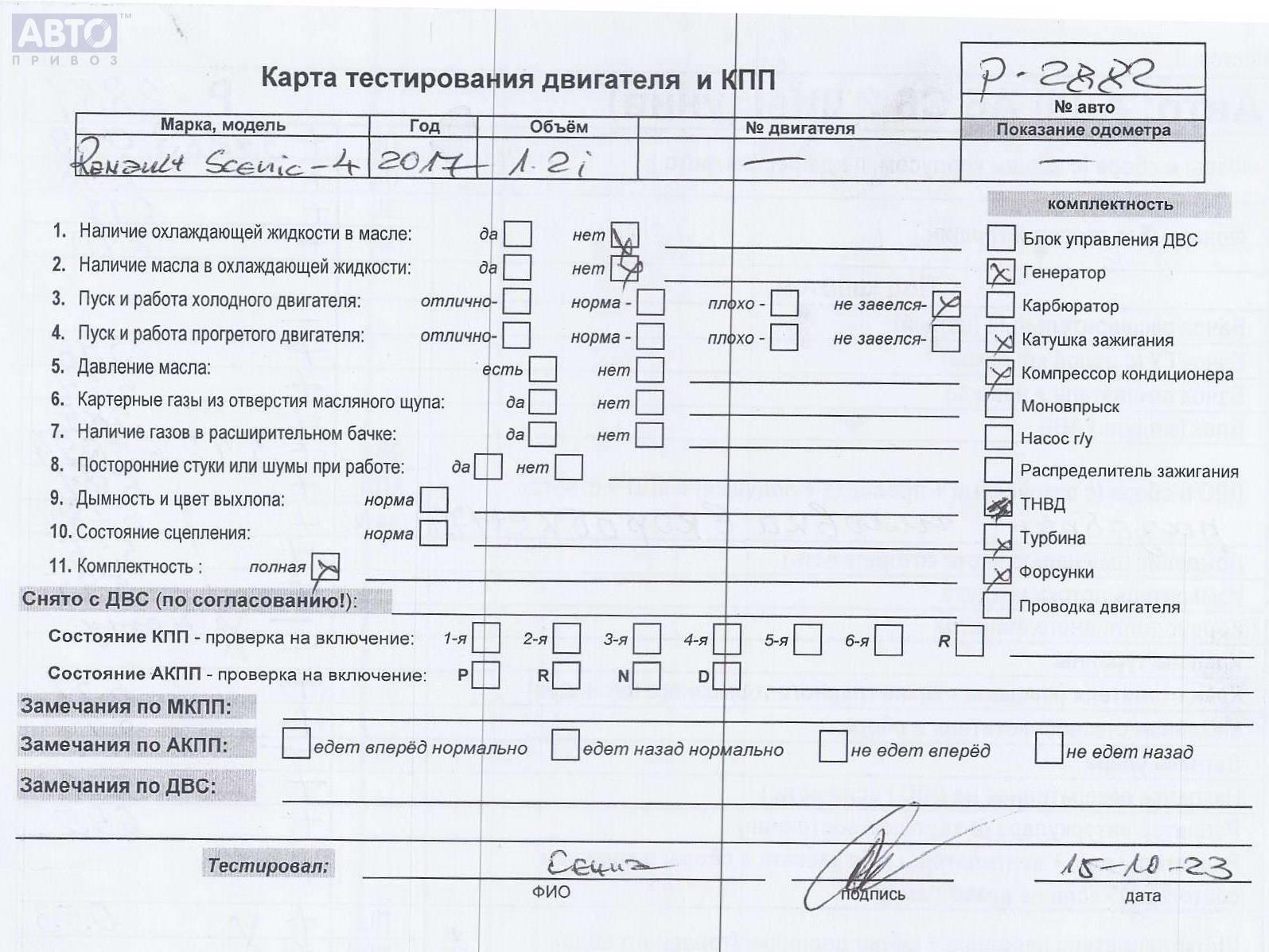 | Марка / Модель / Год: | Renault Scenic IV (2016-2022) 2017 |
