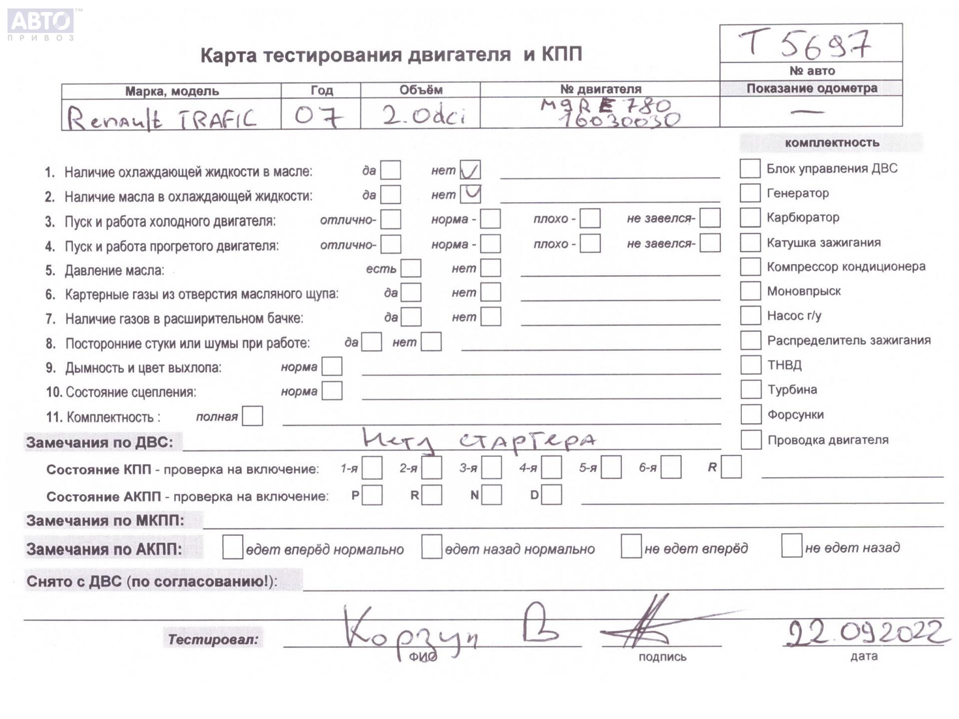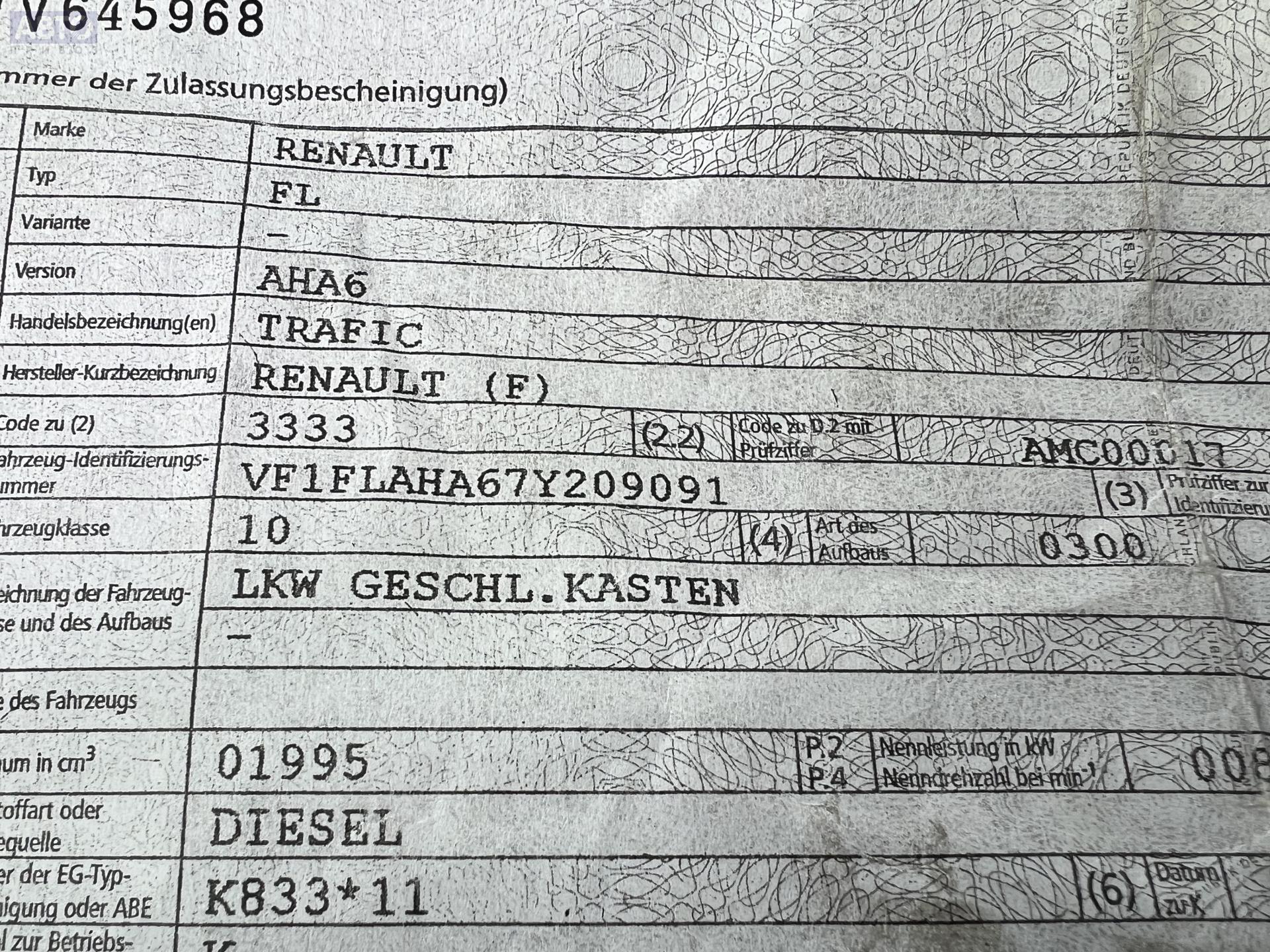| Марка / Модель / Год: | Renault Trafic (2001-2014) 2007 |