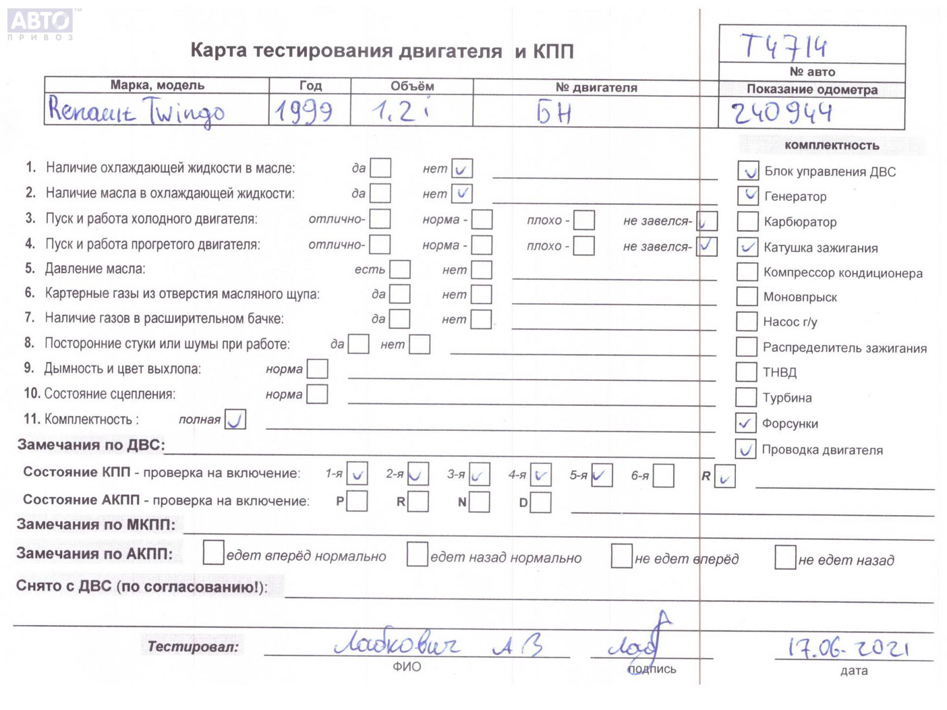 | Автомобиль / VIN: | T4714 VF1C0680519824699 |