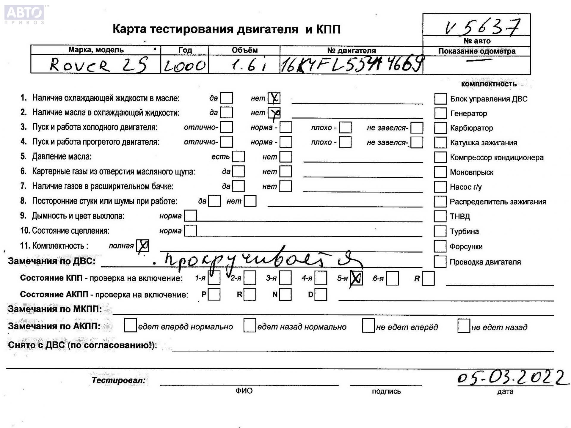 | Автомобиль / VIN: | V5637 |