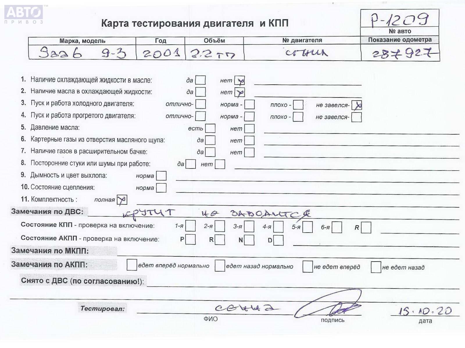 | Автомобиль / VIN: | P1209 YS3DF55D222024602 |