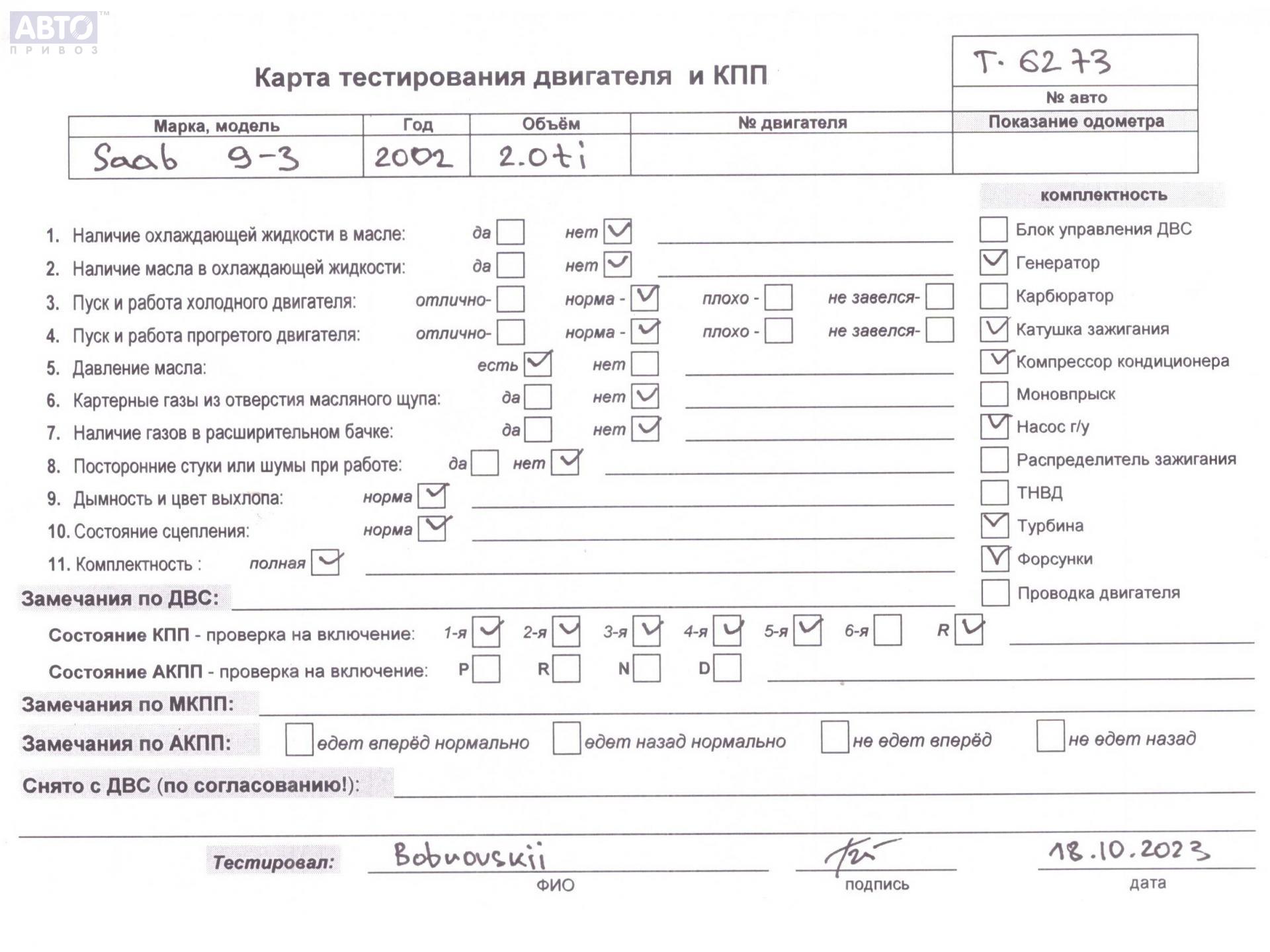 | Марка / Модель / Год: | Saab 9-3 (1998-2002) 2002 |