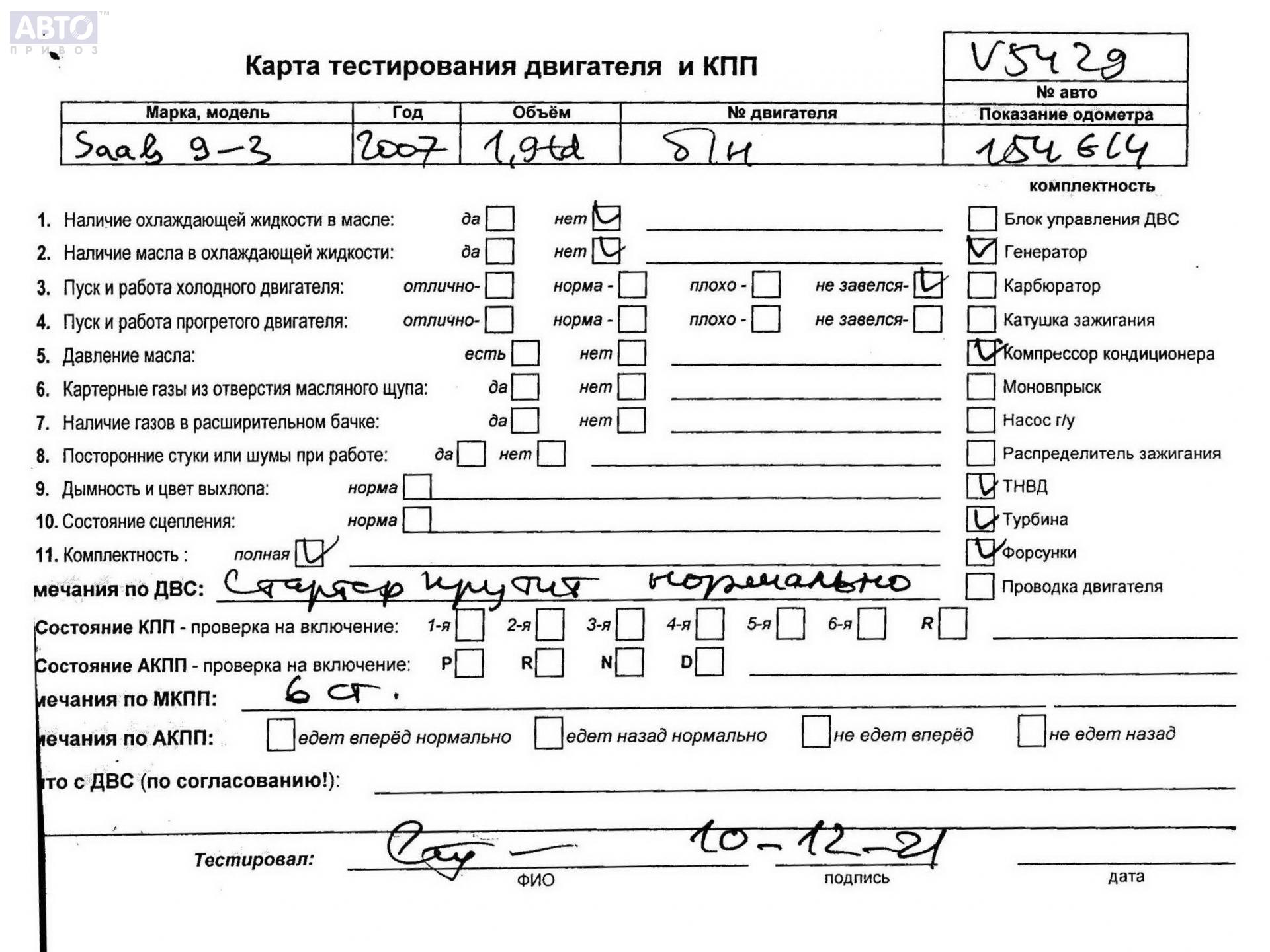 | Автомобиль / VIN: | V5429 YS3FF46V471001071 |