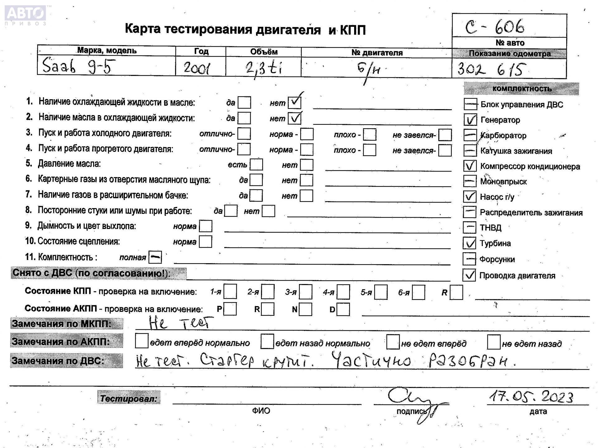 | Марка / Модель / Год: | Saab 9-5 (1997-2001) 2001 |