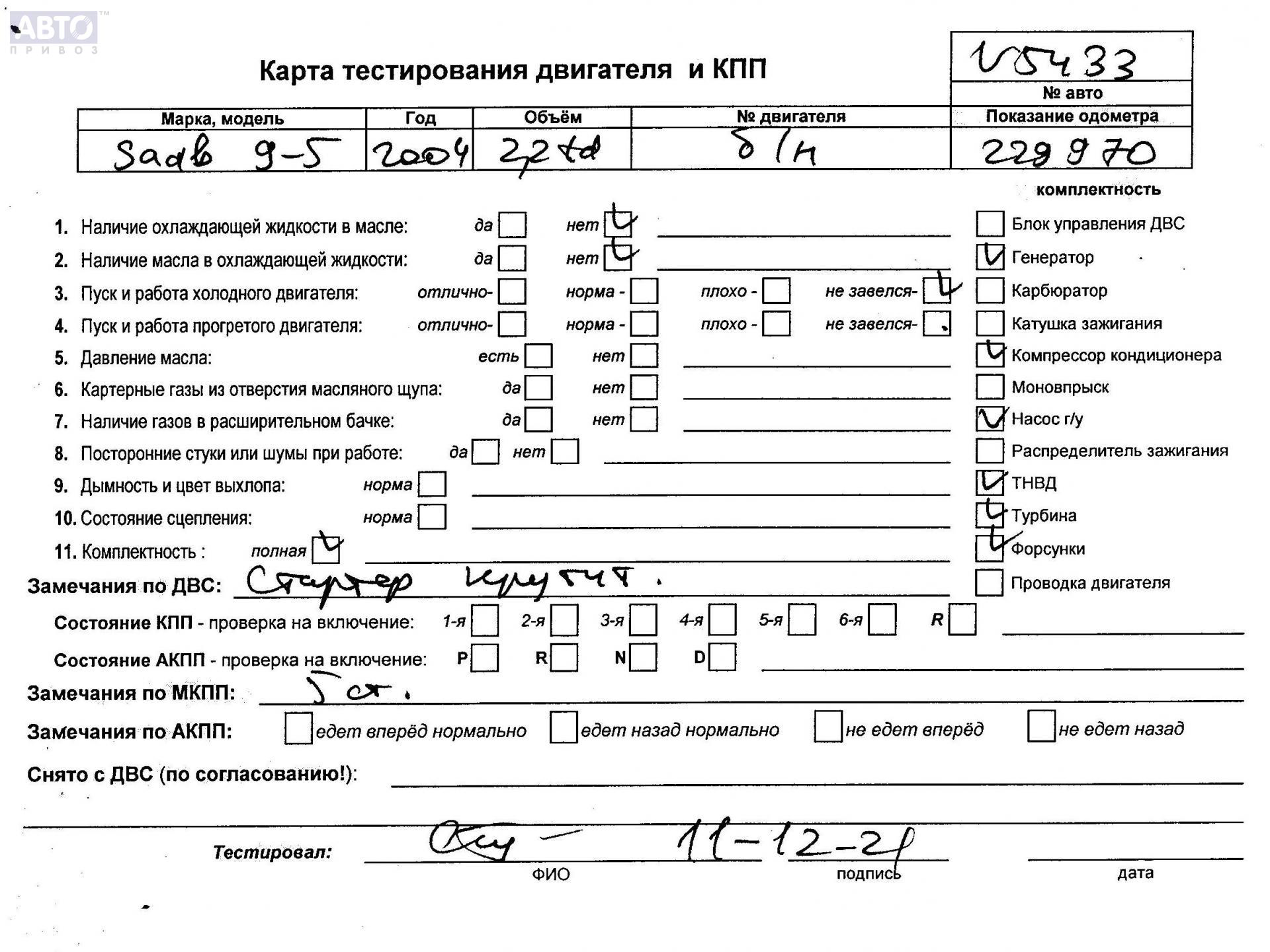 | Автомобиль / VIN: | V5433 YS3EB55D943513771 |