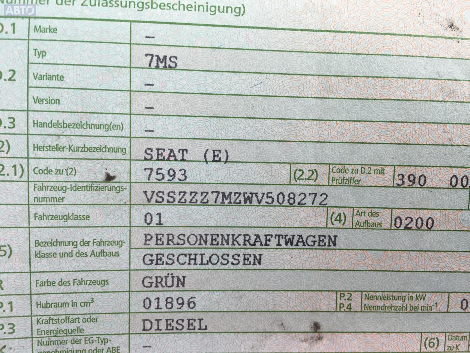| Марка / Модель / Год: | Seat Alhambra (1996-2000) 1997 |