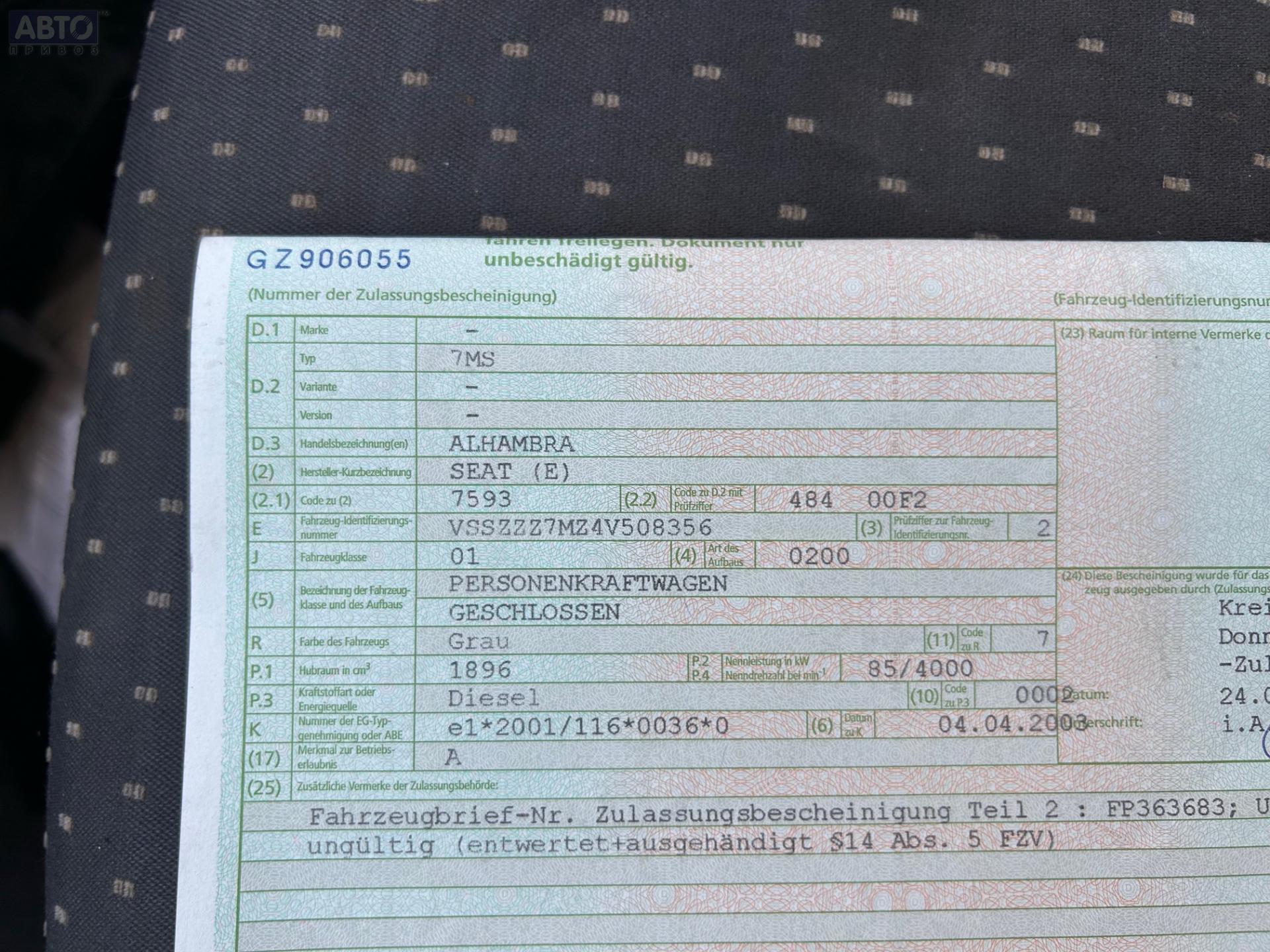| Марка / Модель / Год: | Seat Alhambra (2000-2010) 2003 |