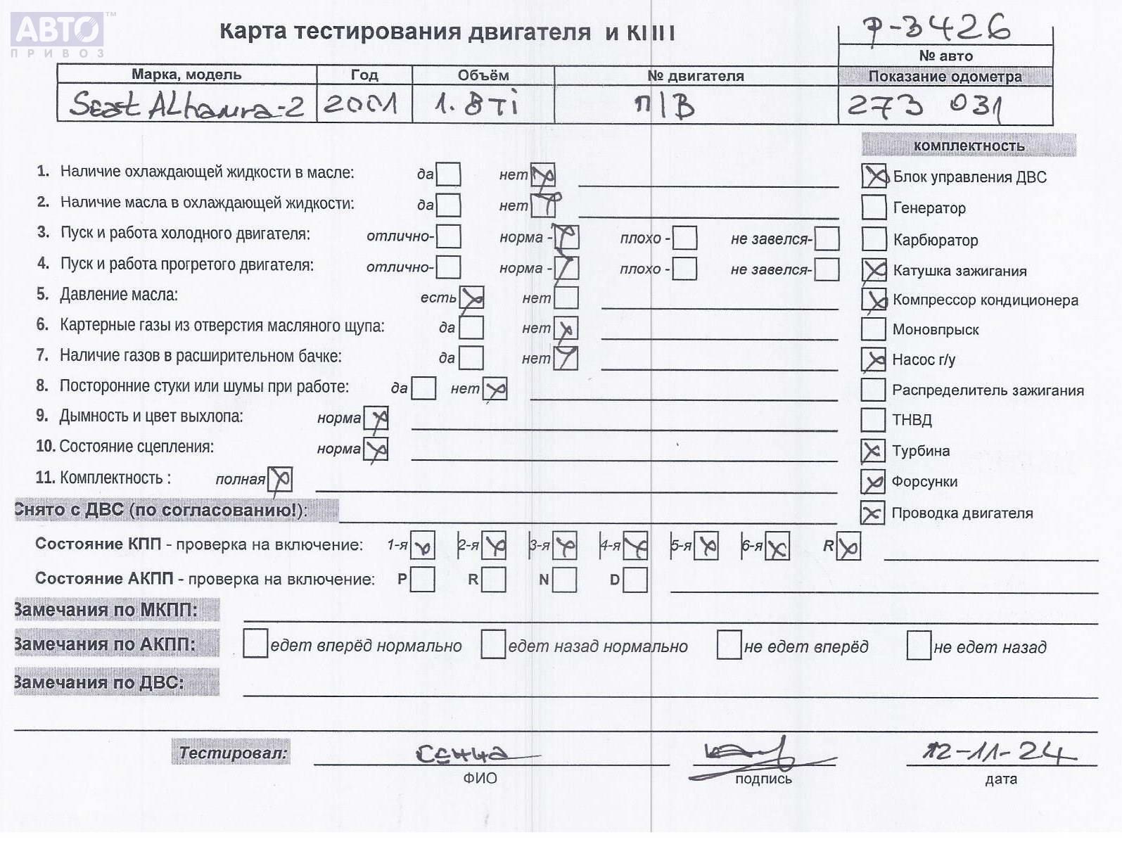 | Автомобиль / VIN: | P3426 VSSZZZ7MZ2V524218 |