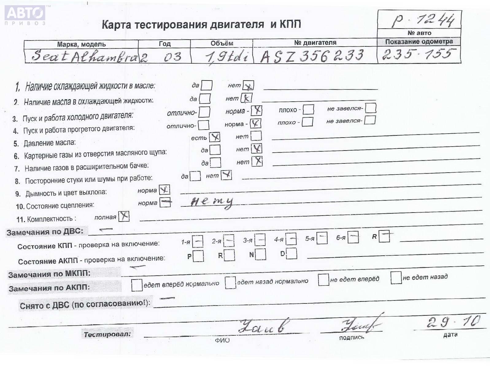 | Марка / Модель / Год: | Seat Alhambra (2000-2010) 2003 |