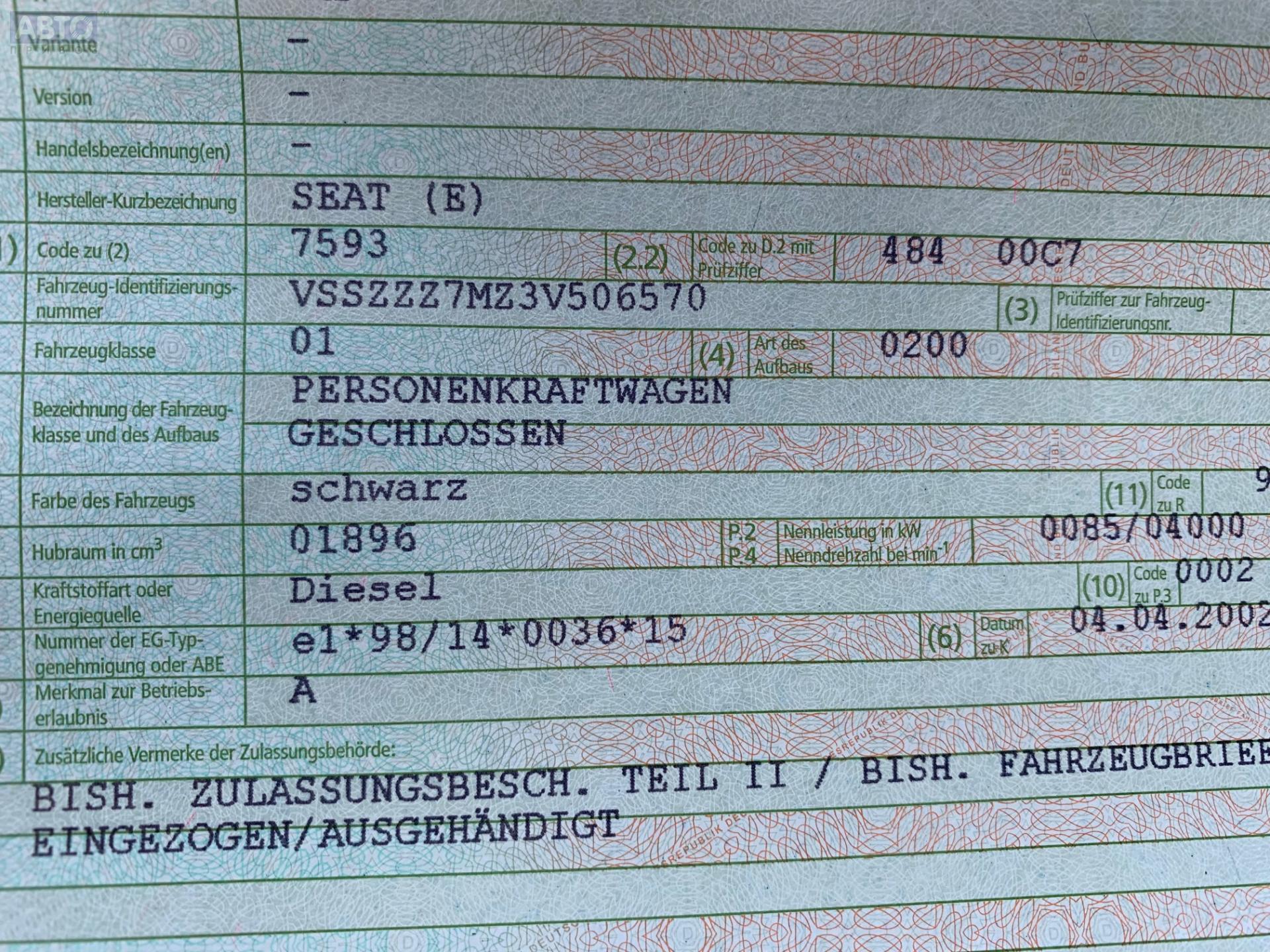 | Марка / Модель / Год: | Seat Alhambra (2000-2010) 2002 |