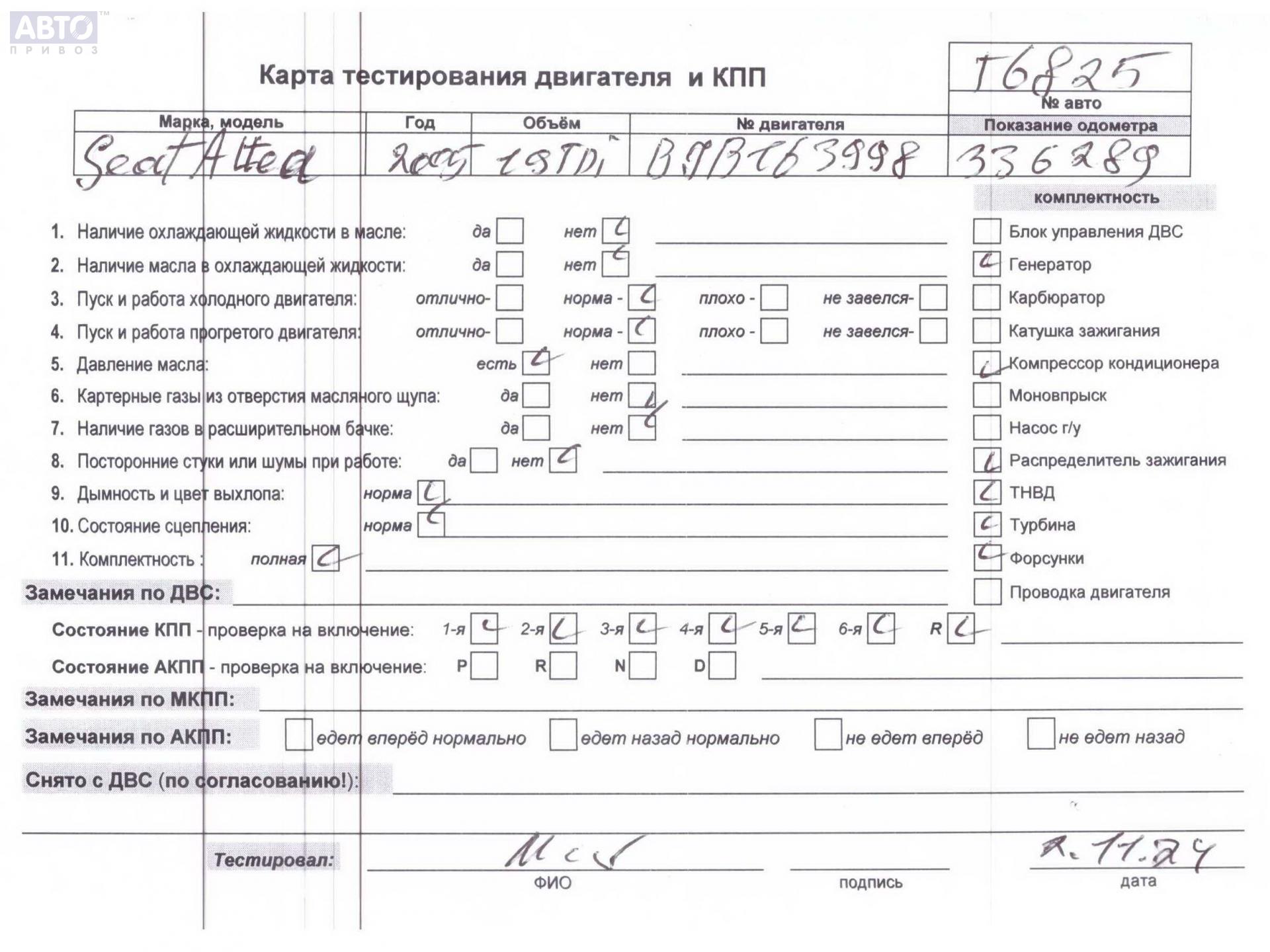 | Марка / Модель / Год: | Seat Altea 2005 |