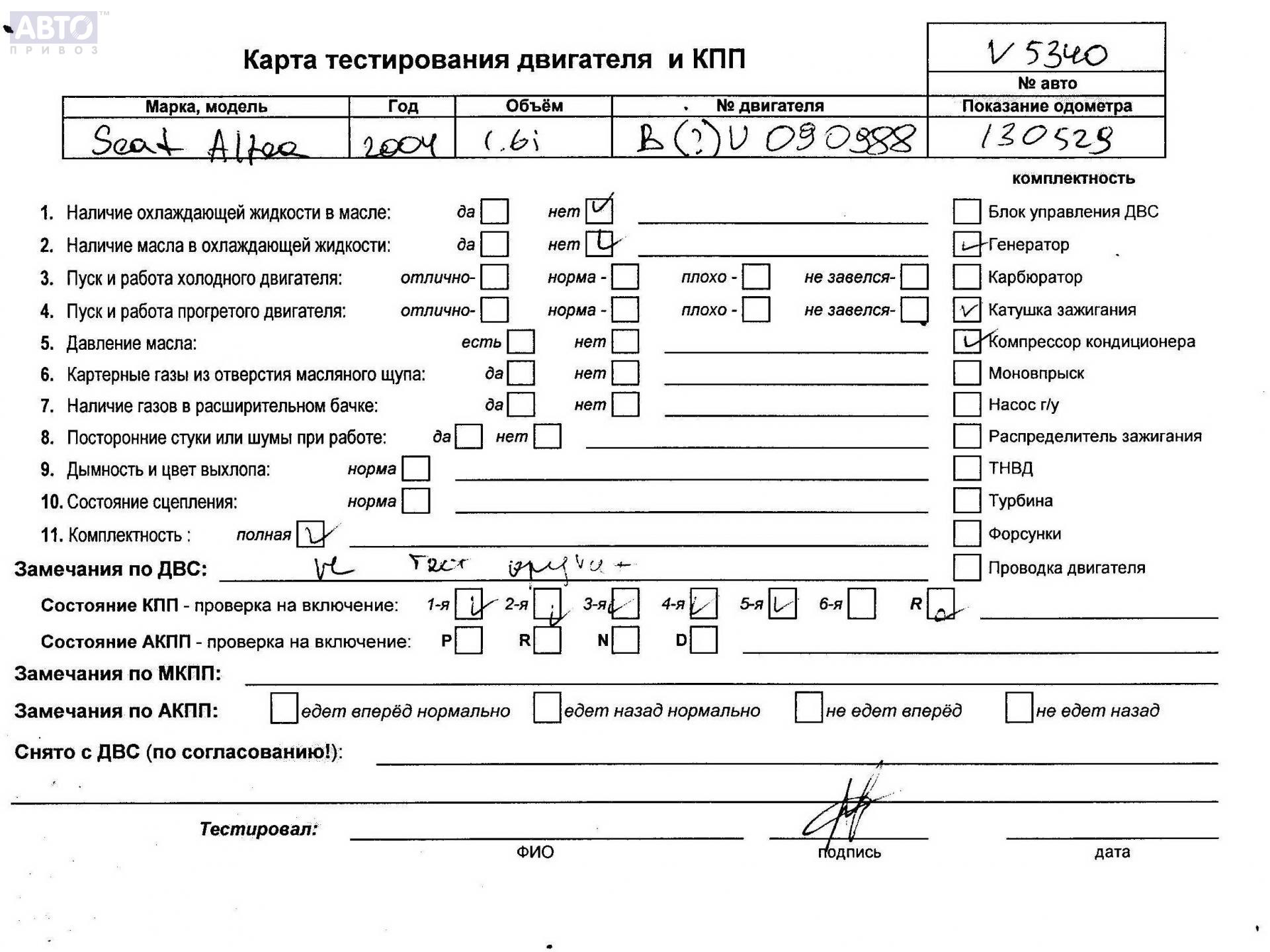 | Марка / Модель / Год: | Seat Altea 2004 |