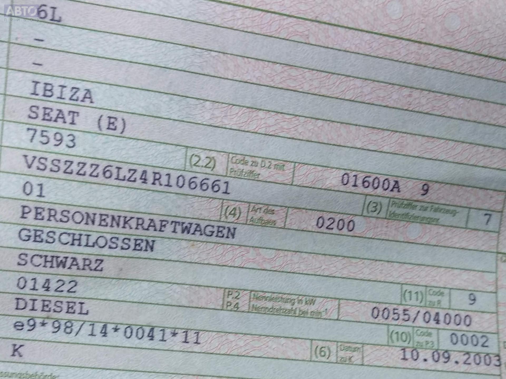 | Марка / Модель / Год: | Seat Ibiza (2002-2008) 2003 |