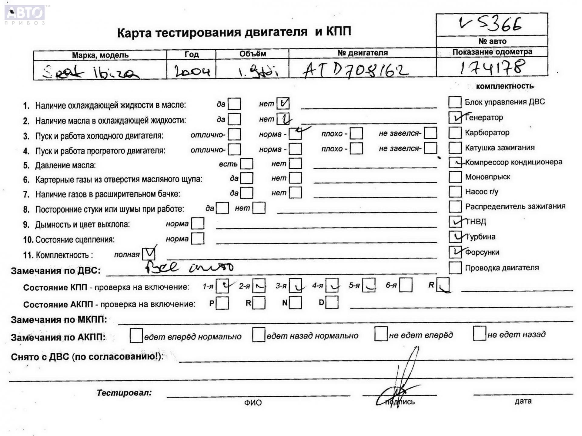 | Марка / Модель / Год: | Seat Ibiza (2002-2008) 2004 |