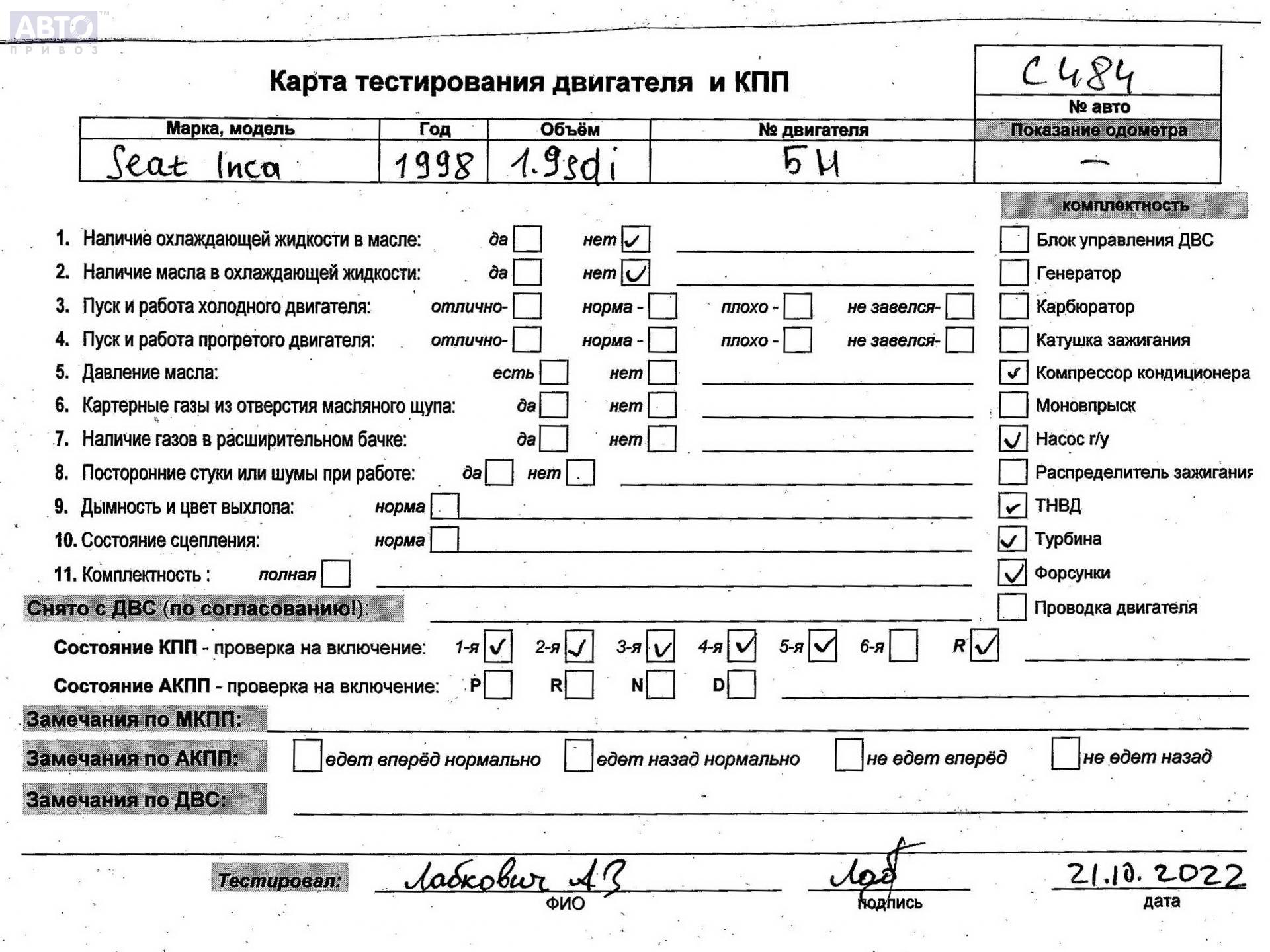 | Марка / Модель / Год: | Seat Inca 1998 |
