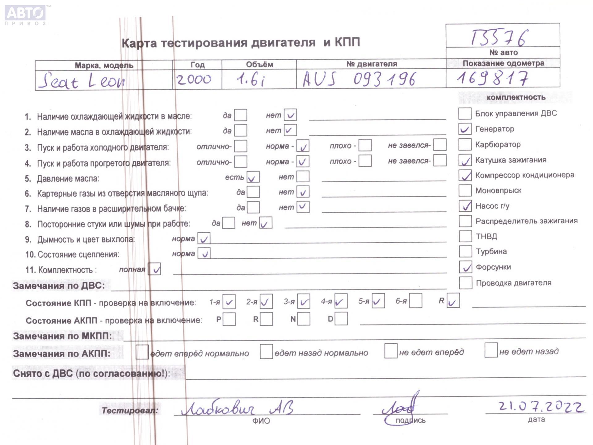 | Марка / Модель / Год: | Seat Leon (1999-2006) 2000 |