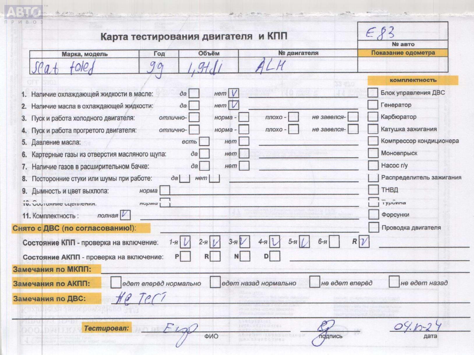 | Марка / Модель / Год: | Seat Toledo (1999-2004) 2001 |