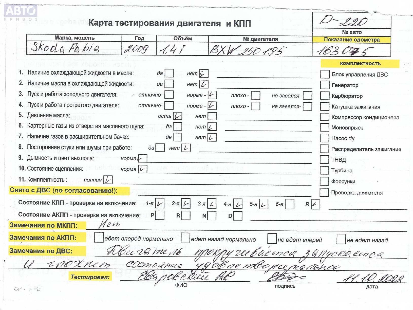 | Марка / Модель / Год: | Skoda Fabia mk2 (5J) 2009 |
