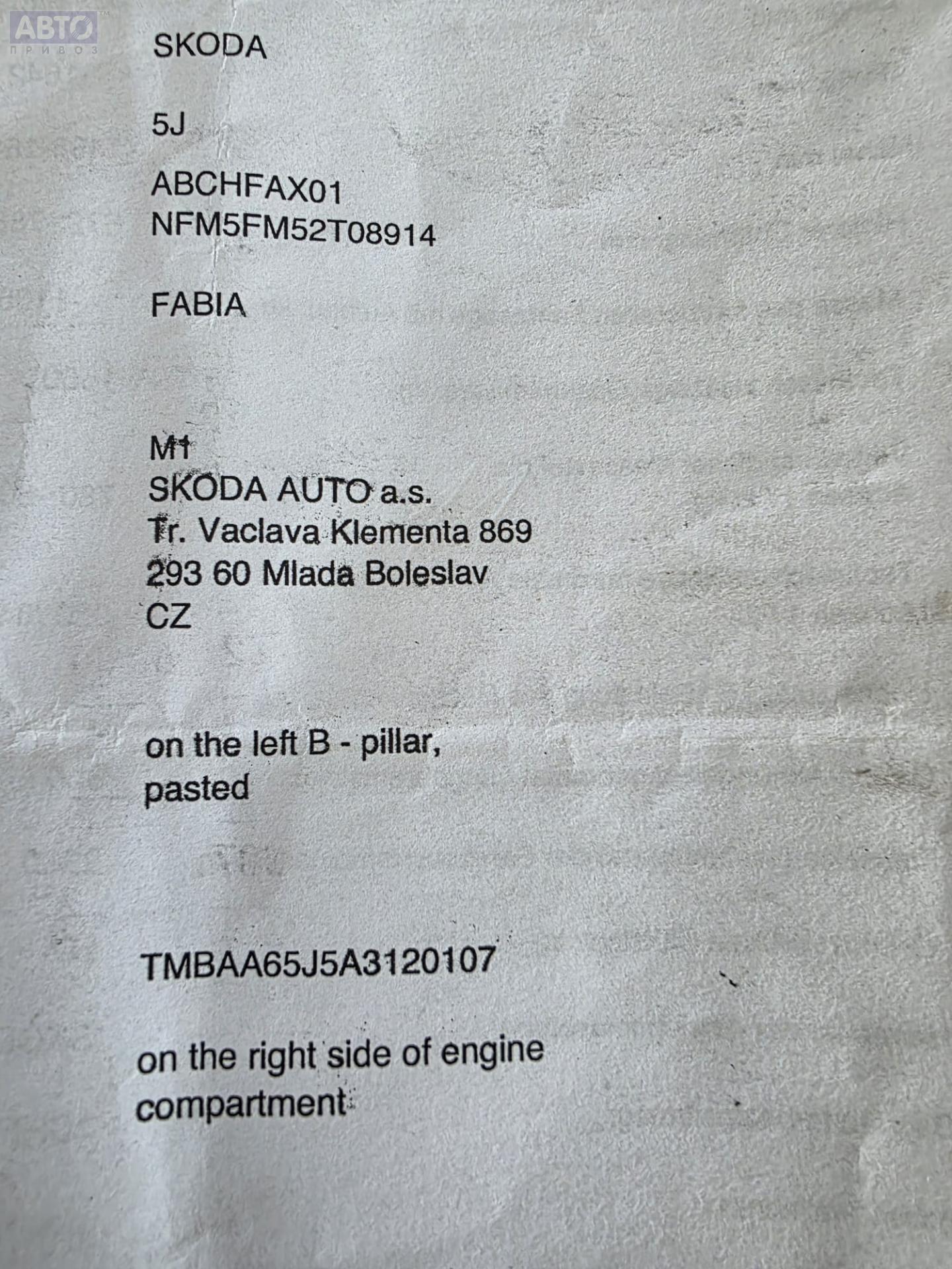 | Автомобиль / VIN: | F0002 TMBAA65J5A3120107 |