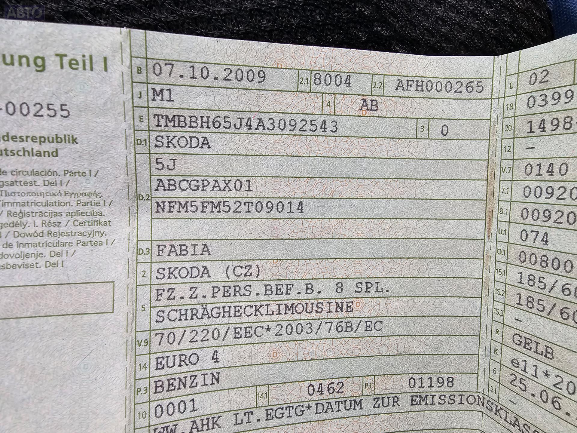 | Марка / Модель / Год: | Skoda Fabia mk2 (5J) 2009 |